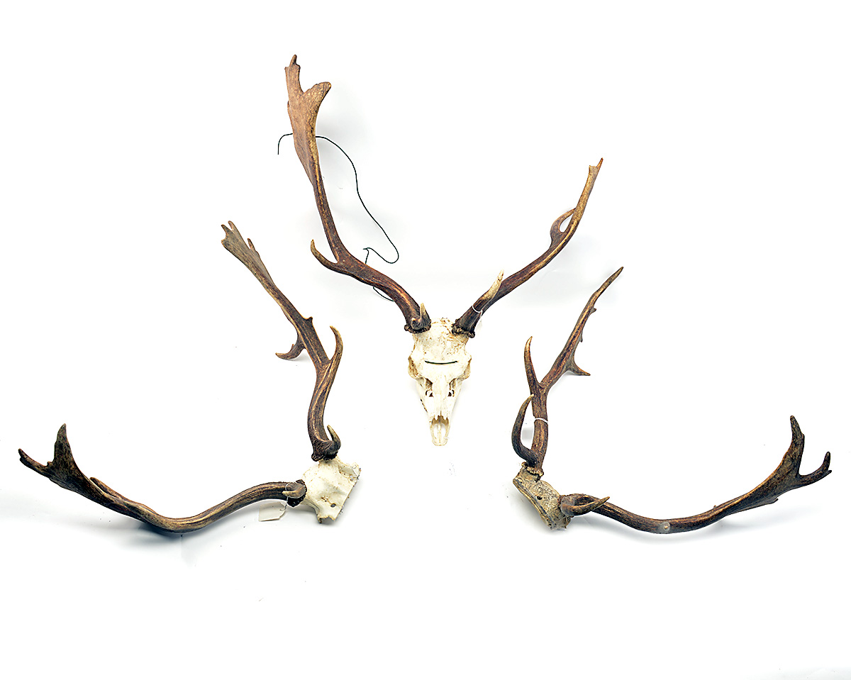 A COLLECTION OF THREE FALLOW DEER SKULL MOUNTS