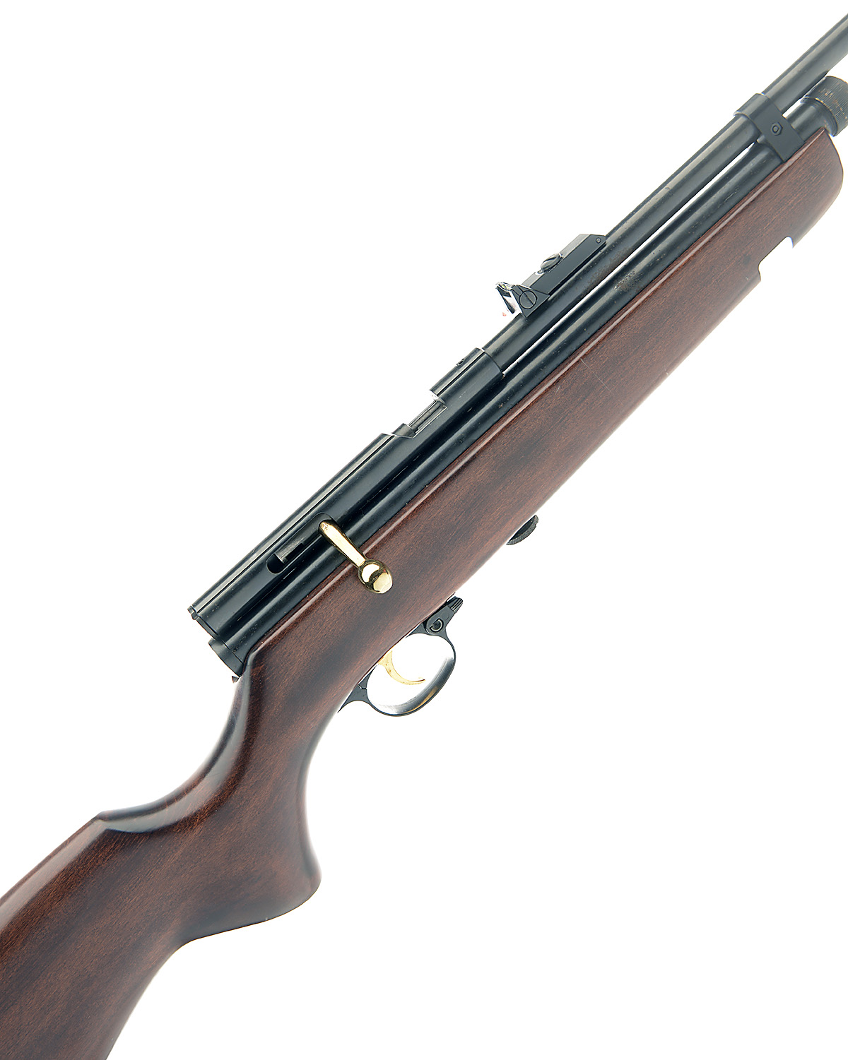 A .22 Co2-POWERED AIR-RIFLE SIGNED SMK, MODEL 'QB78DL', serial no. 60707072, with blued sighted 21 1/2in. barrel, bolt action receiver and beech half-stock, untested