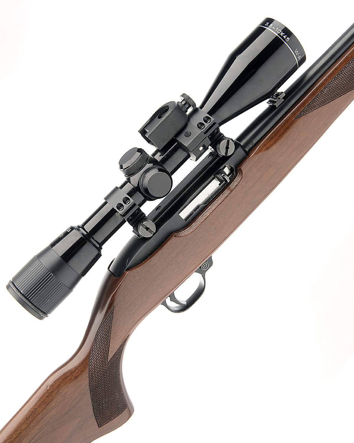 RUGER .22 L.R. 'MODEL 10/22' SELF-LOADING SPORTING RIFLE, serial no. 237-47089, 18 3/4in. nitro barrel, threaded for sound moderator, block-mounted bead fore-sight, folding leaf rear-sight, fitted with a Nikko Stirling 3.5-10x45 telescopic sight, manual safety, detachable magazine missing, fitted with a red beam shot, pistolgrip stock with recoil pad, canvas sling