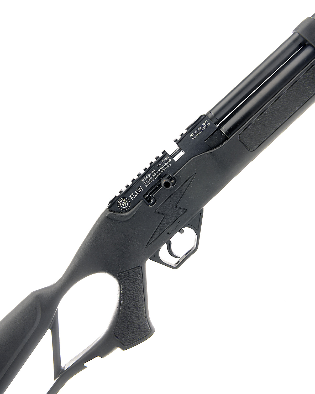 A .22 PRE-CHARGED PNEUMATIC AIR-RIFLE SIGNED HATSAN, MODEL FLASH, serial no. 1118 20678,