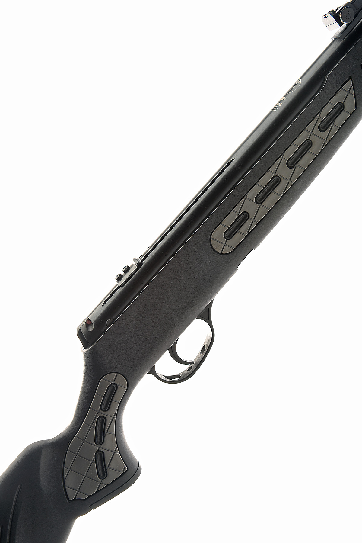 A BOXED .177 BREAK-BARREL AIR-RIFLE, SIGNED HATSAN FOR EDGAR BROTHERS 'MODEL STRIKER', serial no. 0119 24256, 18in. barrel including integral sound moderator, high visibility fore-sight with tunnel protector, adjustable open rear sight, air chamber with integral sight rail, manual safety, blued finish, synthetic pistolgrip halfstock with cheekpiece, 14 1/2in. pull including rubber recoil pad, the whole appearing unused in its makers cardboard carton with instructions