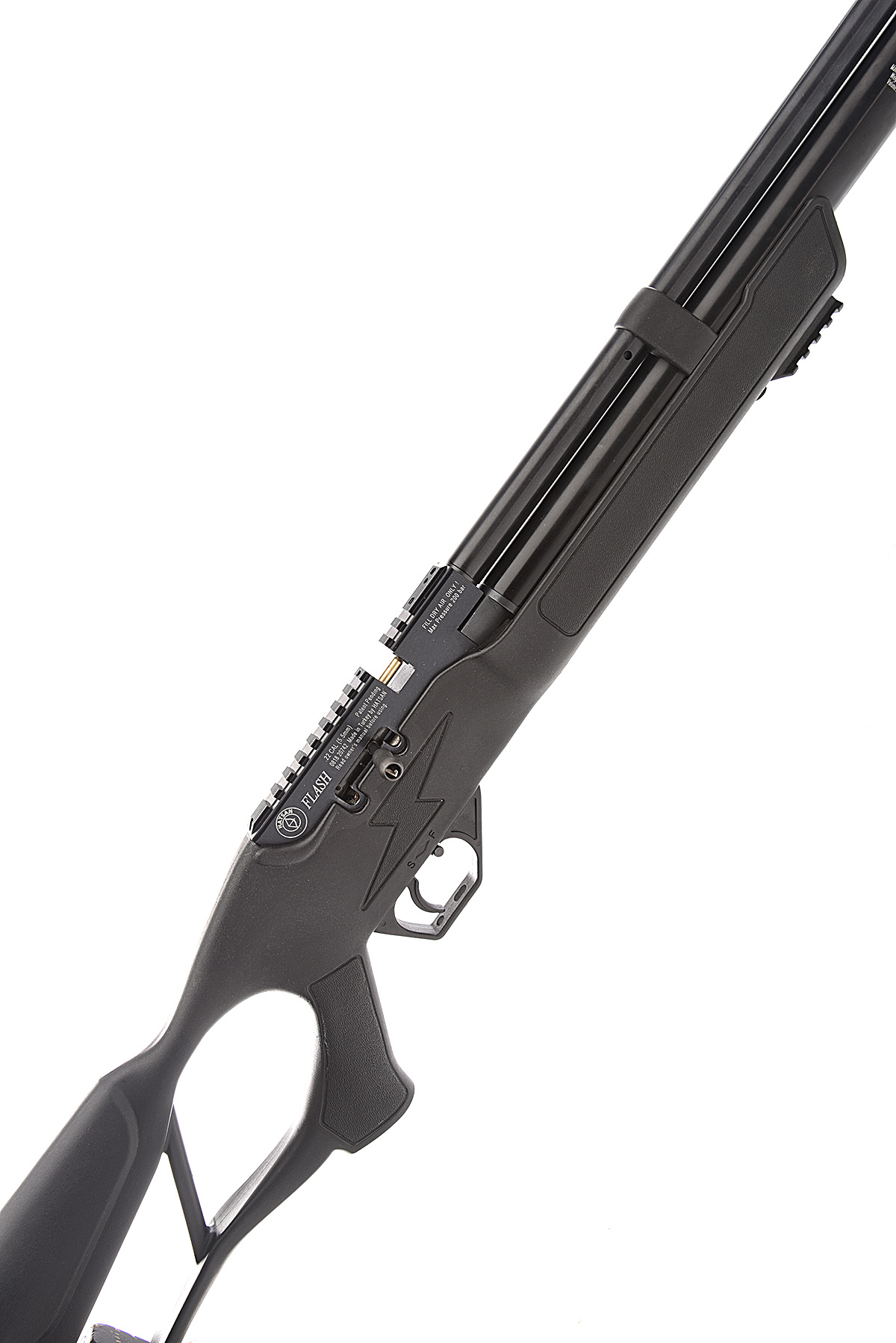A .22 PRE-CHARGED PNEUMATIC AIR RIFLE SIGNED HATSAN, MODEL FLASH serial no. 081820742,