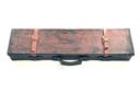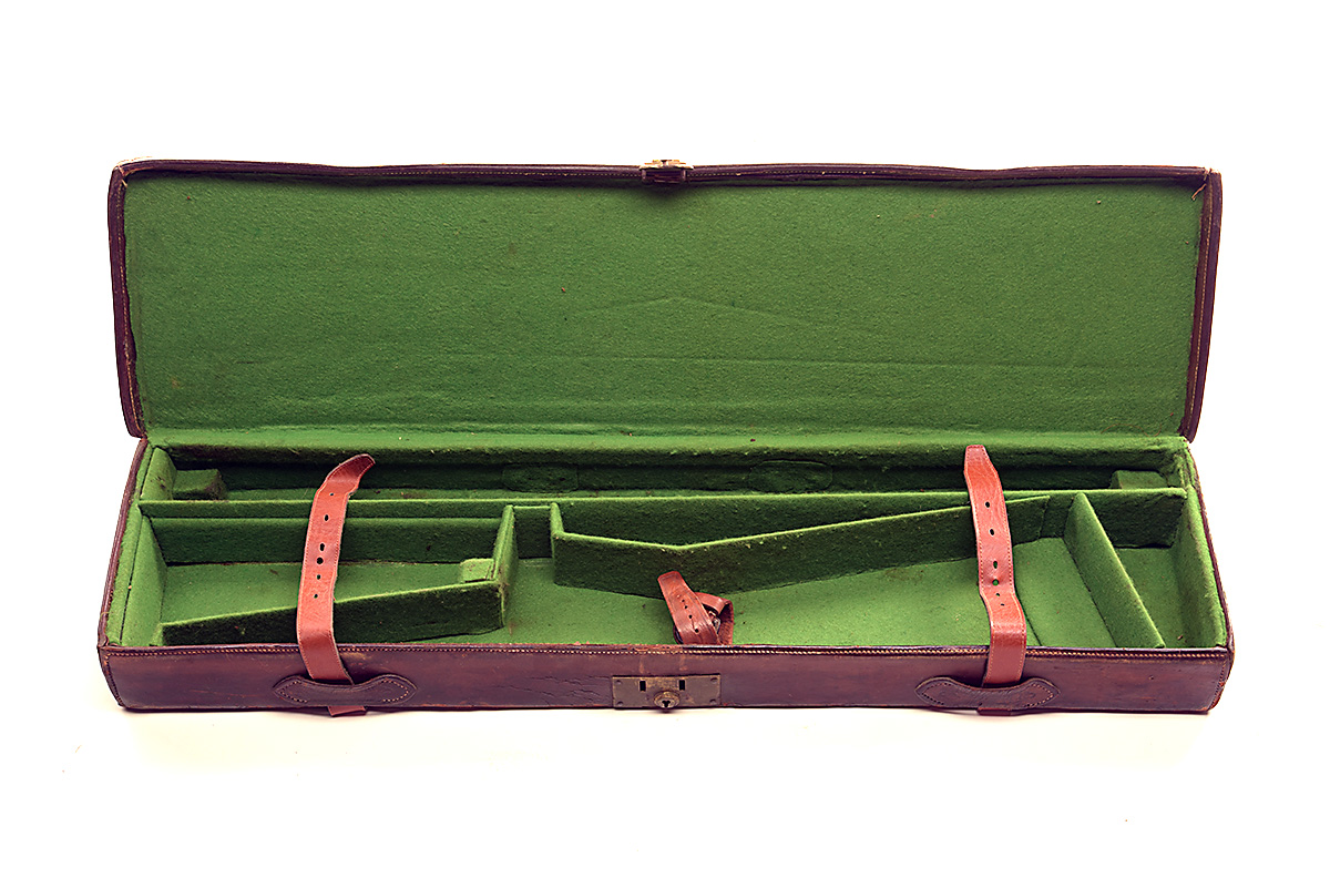 A LEATHER SINGLE GUNCASE, fitted for 29in. barrels, the interior lined with green baize, brass lock (key missing)
