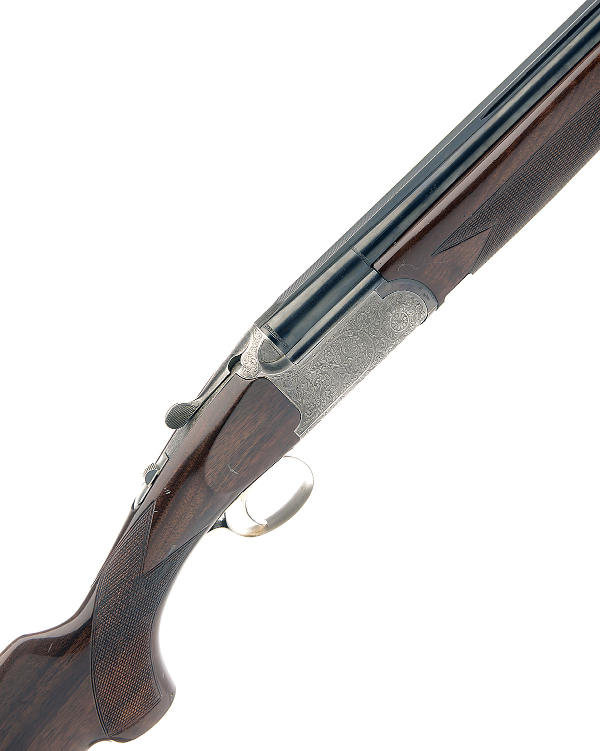 MEDALLIST 12-BORE SINGLE-TRIGGER OVER AND UNDER EJECTOR, serial no. 146244, 27 3/4in. nitro barrels with ventilated mid-rib and 10mm ventilated matt top-rib, 2 3/4in. chambers, multichokes (no spares), hold-open toplever, automatic safety with integral barrel selector switch, gold-washed single trigger, floral scroll engraving, bright finish, 14 1/4in. pistolgrip stock including buttplate, weight 7lb. 6oz.
