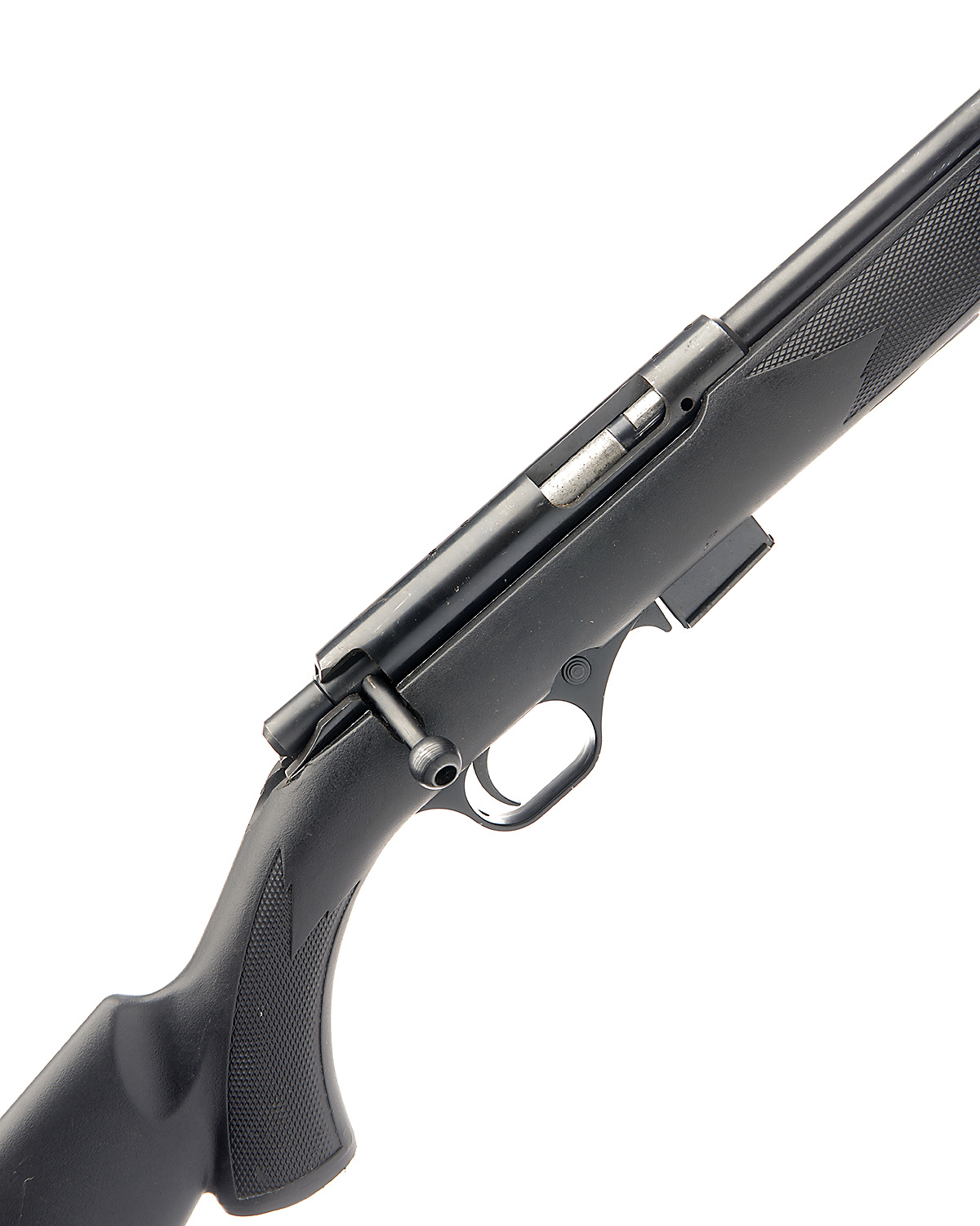 A MOSSBERG .17 HMR 'INT'L' BOLT-ACTION SPORTING RIFLE, serial No. HHA025936, 17in. unsighted nitro barrel, threaded for sound moderator, manual safety, detachable magazine, black synthetic pistolgrip stock, 14 1/2in. pull