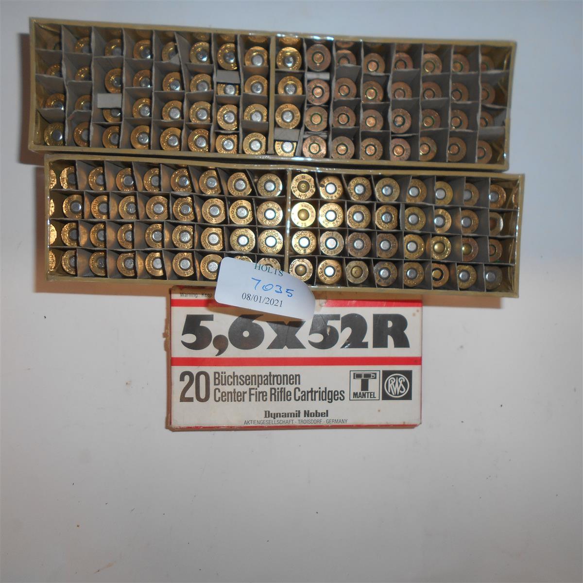 145 ROUNDS 5.6x52R (22 SAVAGE HI-POWER) AMMUNITION, comprising of :
