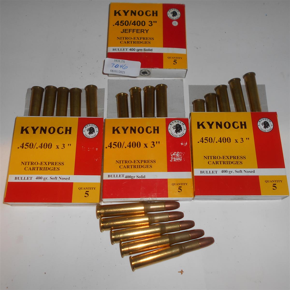 19 ROUNDS .450/400 x 3in. JEFFREY NITRO EXPRESS AMMUNITION, BY KYNAMCO, comprising of 9 solid 400grn and 10 soft nose 400grn.