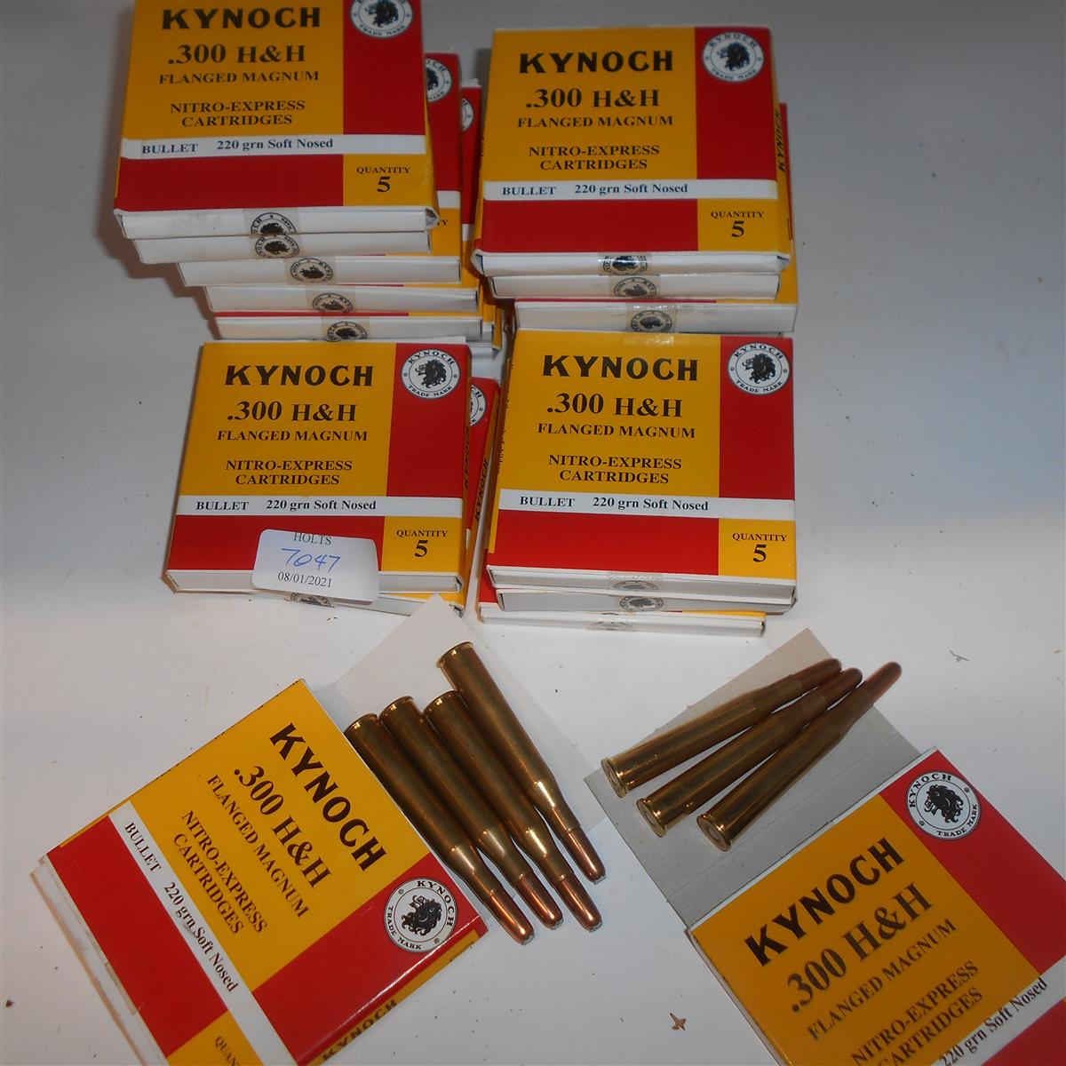 APPROXIMATELY 97 ROUNDS .300 H&H FLANGED MAGNUM 220grn. SOFT NOSE AMMUNITION BY KYNAMCO, Please be advised that ammunition, primers, primed cases, blanks and percussion caps cannot be sent to you by post or carrier. If you wish you can book a collection at one of our regional valuation days or collect from our offices at PE31 6HA in Norfolk
