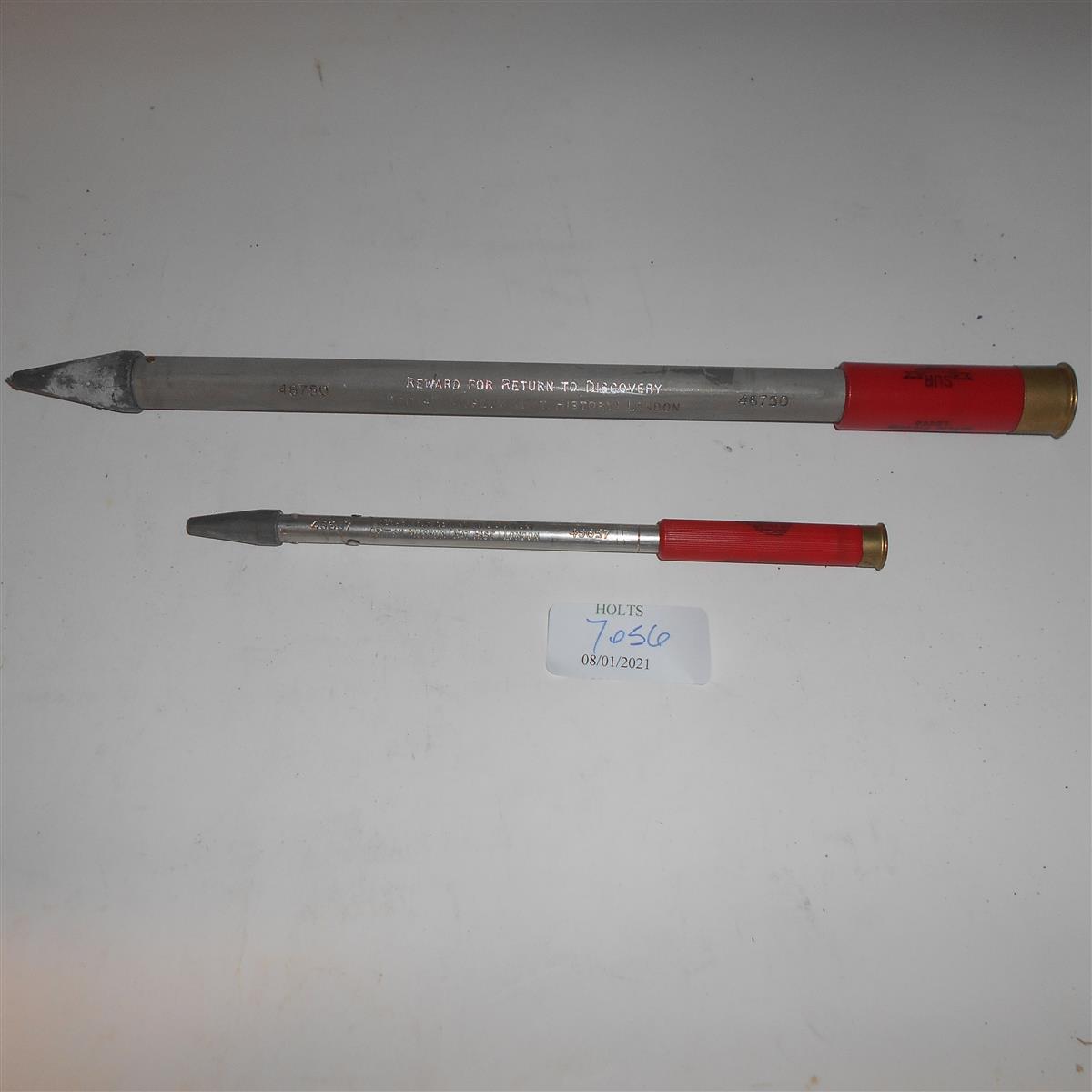 a 12 bore steel tag 10 inches ( 260mm) long with pointed lead head, stamped on the shaft are the words: "REWARD FOR RETURN TO "DISCOVERY" BRITISH MUSEUM (NAT. HISTORY) LONDON", this steel shafted tag is mounted on a Fiocchi 12 bore live cartridge. The tag is individually numbered,