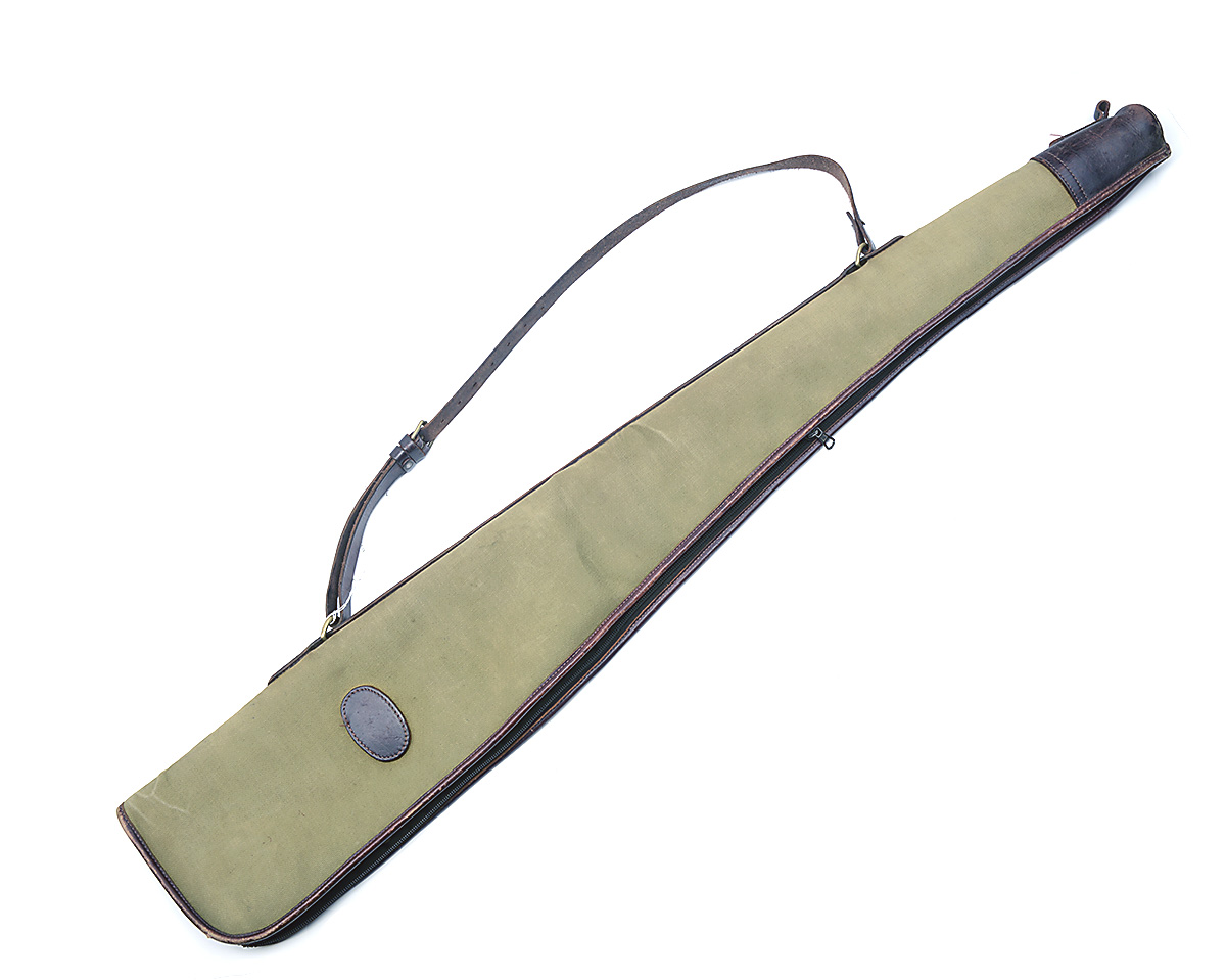 A HOLLAND & HOLLAND CANVAS & LEATHER FLEECE-LINED SINGLE GUNSLIP, leather shoulder strap, brass fittings