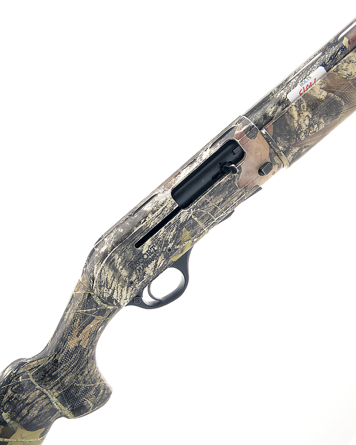 HATSAN 12-BORE (89MM) 'ESCORT MAGNUM' SEMI-AUTO SHOTGUN, serial no. 404358, restricted magazine, 28in. superior proofed nitro barrel with 7mm ventilated matt rib, 89mm chamber, multichoke (with spares), manual button safety, magazine cut-off switch, 15in. synthetic pistolgrip stock including ventilated rubber recoil pad, the whole in camouflage effect finish, in its makers carton