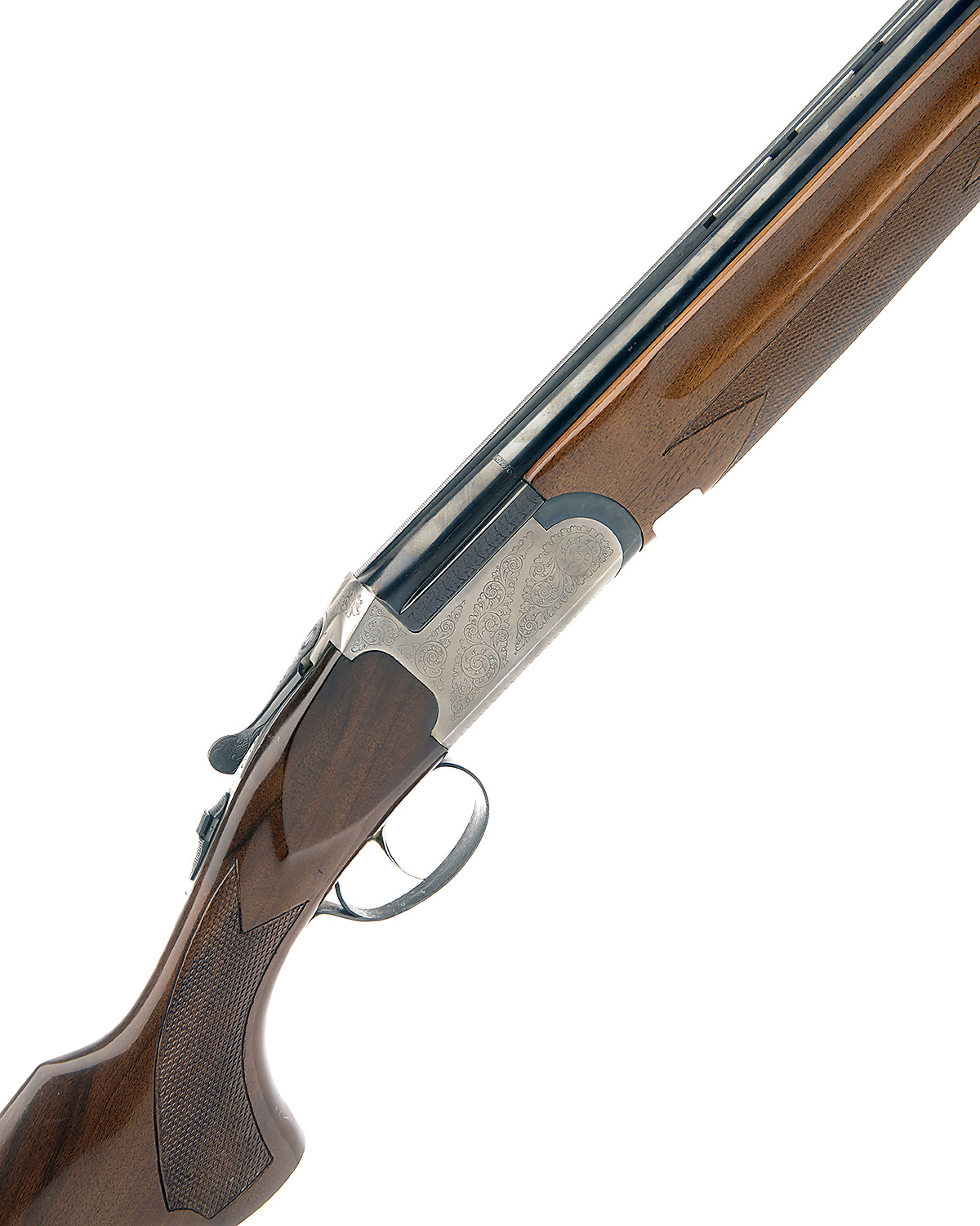 FELIX SARASKETA 12-BORE SINGLE-TRIGGER OVER AND UNDER EJECTOR, serial no. X7388, 28in. nitro barrels with 7mm ventilated matt top-rib, 2 3/4in. chambers, multichokes (no spares), hold-open toplever, automatic safety with integral barrel selector switch, partial acanthus scroll engraving, 14 1/2in. pistolgrip stock including 1/2in. extension, weight 7lb. 6oz.