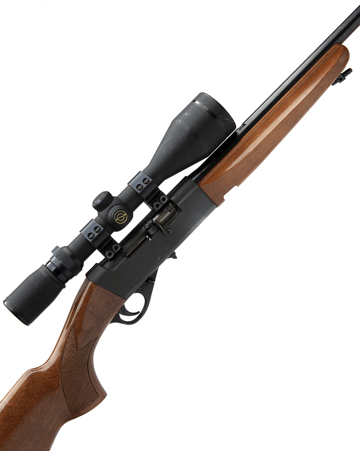 J.G. ANSCHUTZ .22 L.R. 'MODEL 252' SELF-LOADING SPORTING RIFLE, serial no. 1379555, Dated 1992. 23 1/2in. nitro barrel, threaded for sound moderator, hooded ramp-mounted bead fore-sight, rear-sight missing, fitted with a Simmons 3.5-1050 telescopic sight, manual safety, detachable magazine missing, pistolgrip stock, sling swivels