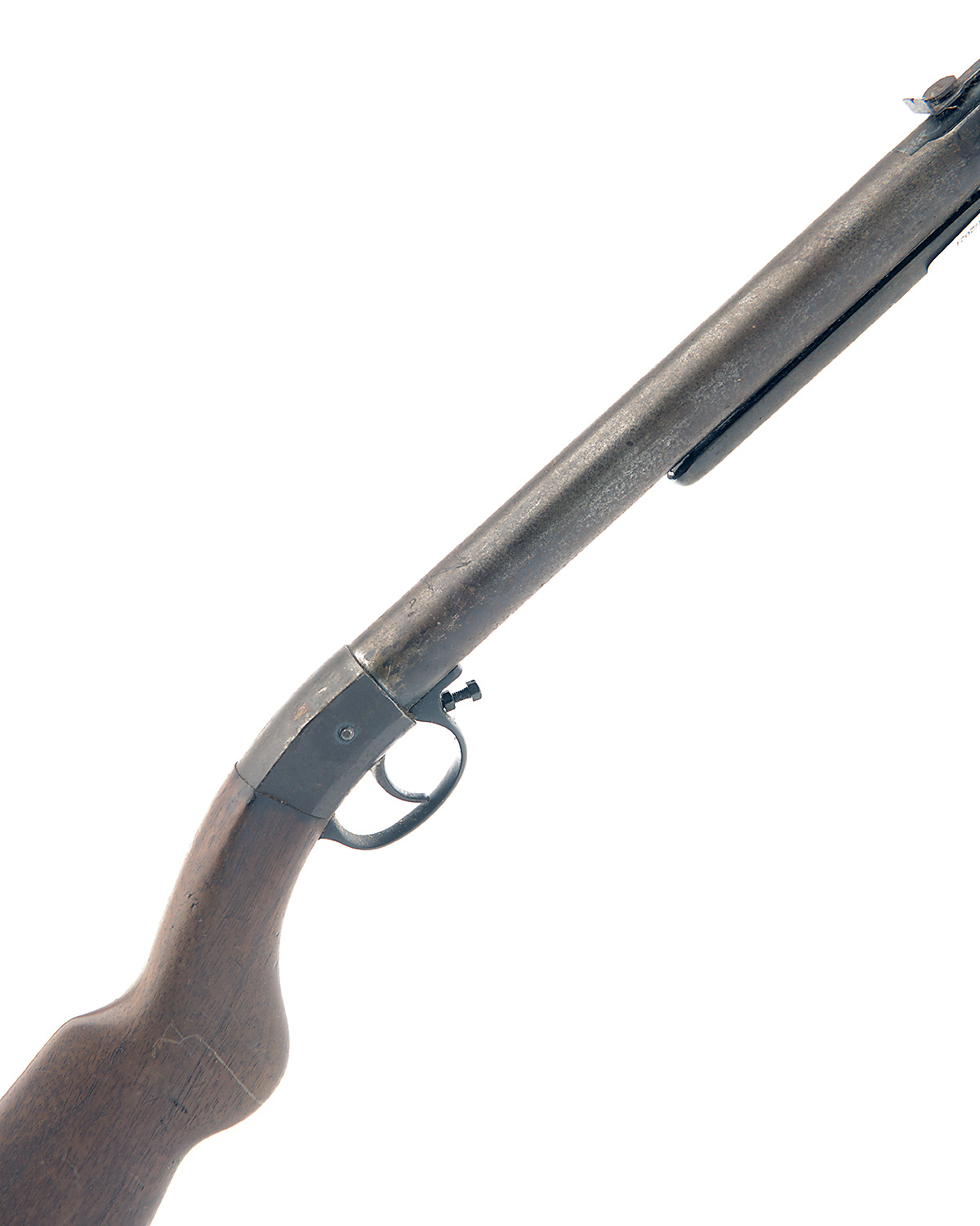 A .22 PRE-WAR BREAK-BARREL AIR-RIFLE SIGNED DIANA, no visible serial number, dated for March 1934, with sighted 18 3/4in. barrel, plain air-chamber with Diana trademark, walnut semi-pistolgrip butt-stock, no provision for fore-end
