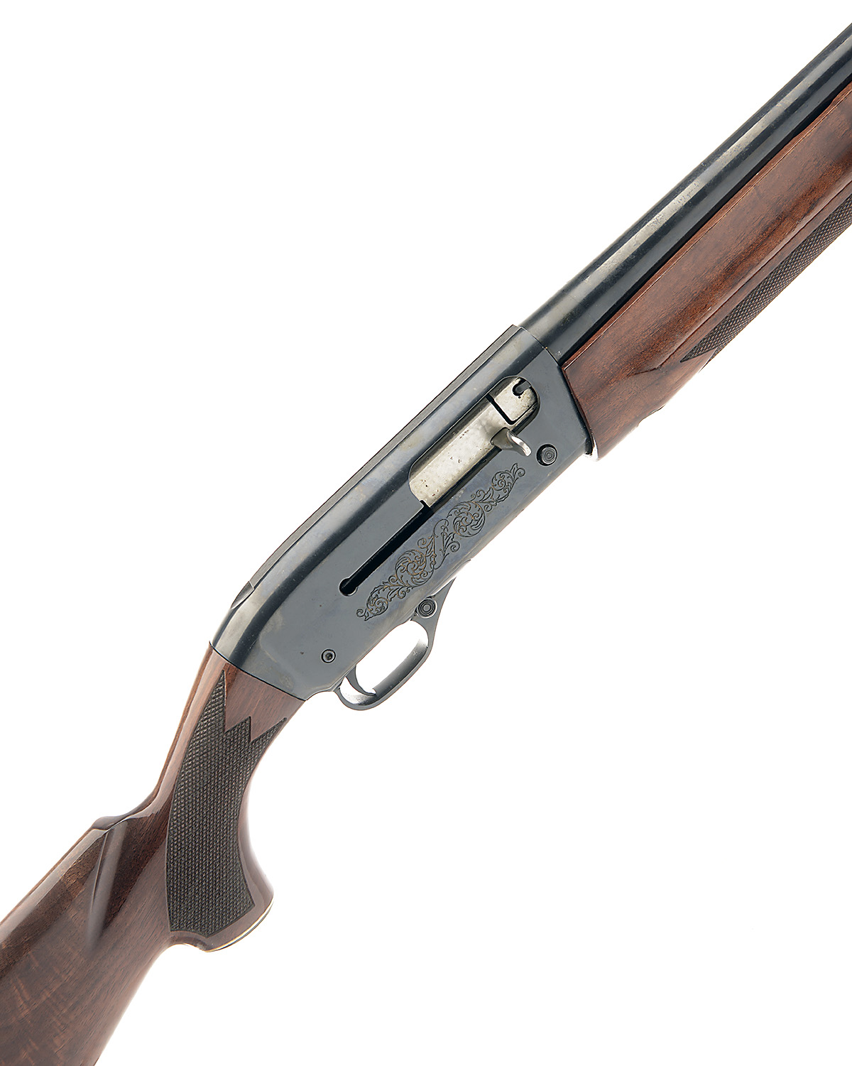 AN F.A.C. WINCHESTER 12-BORE 'SUPER-X MODEL1' SEMI-AUTO SHOTGUN, serial no. M80041, 26in. nitro reproved ribless barrel, 2 3/4in. chamber, bored approx. 1/4 choke, manual push-button safety, blacked action with partial acanthus scroll engraving, 14 3/4in. pistolgrip stock including buttplate