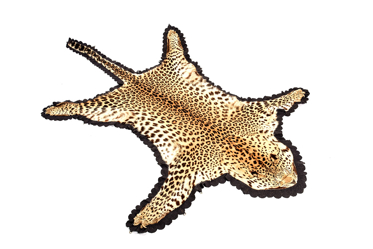A VINTAGE FULL RUG-MOUNT OF AN INDIAN LEOPARD,
