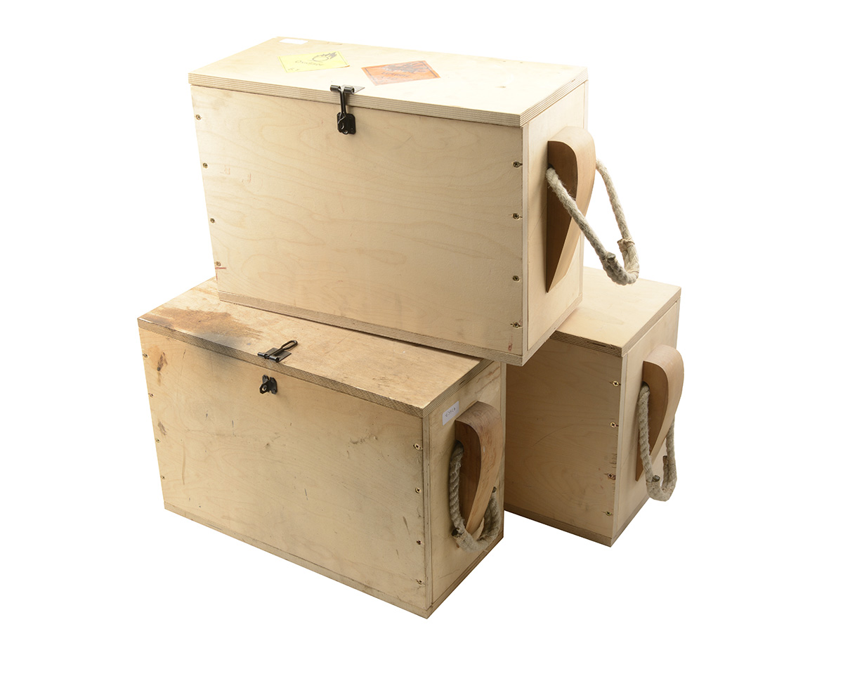 A COLLECTION OF THREE BLACK POWDER STORAGE BOXES,