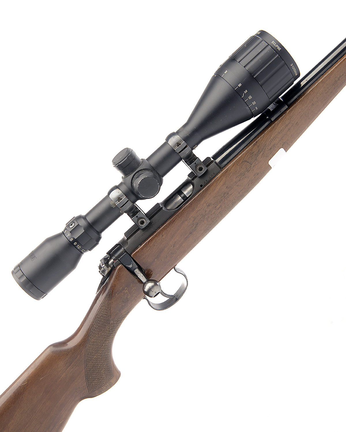 BRNO .22 L.R. 'MODEL 5' BOLT-MAGAZINE SPORTING RIFLE, 22 1/2in. nitro barrel, threaded for sound moderator, ramp-mounted bead fore-sight, rear-sight missing, fitted with a Hawke 3-12x50 telescopic sight, manual safety, detachable magazine missing, pistolgrip stock