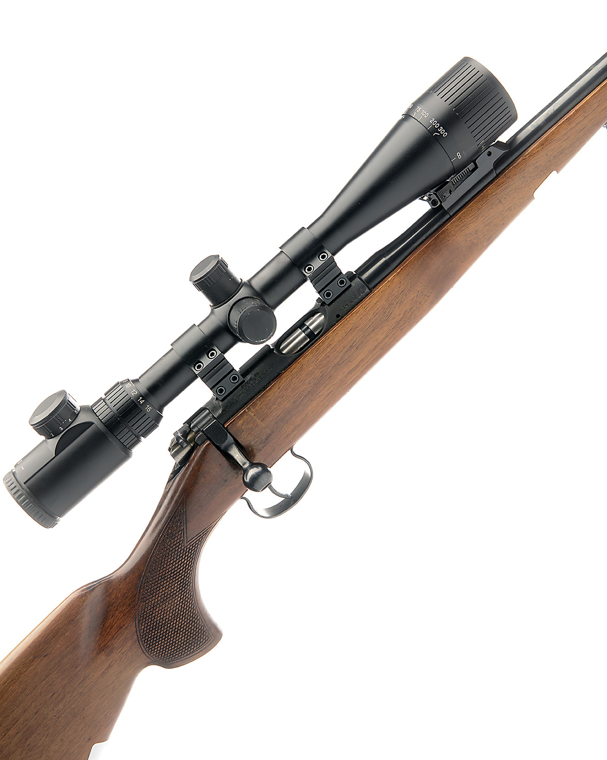 BRNO .22 L.R. 'MODEL 2-E' BOLT-MAGAZINE SPORTING RIFLE, serial no. 346686, 24 5/8in. nitro barrel, threaded for sound moderator, ramp-mounted fore-sight (bead missing), tangent rear-sight, fitted with a Richter Optik 4-16x40 telescopic sight, manual safety, detachable magazine missing, pistolgrip stock