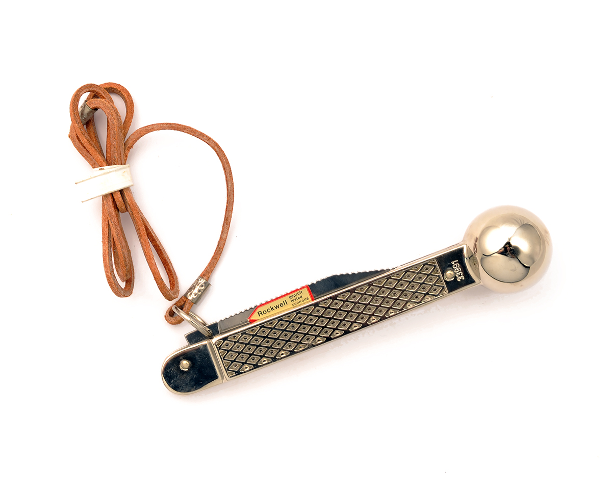 German language version and with 3 1/4in. blade with weighing scale in kilos on the back-edge, heavy ball-ended handle, appearing unused