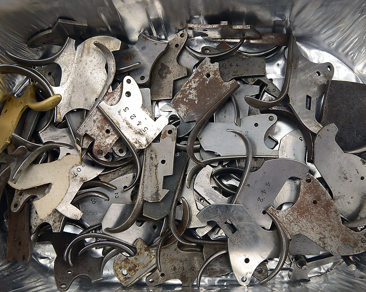 A COLLECTION OF APPROX. 50 TRIGGER BLADES, comprising of Purdey and other makers, for side by side double trigger guns