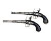 A PAIR OF 18-BORE FLINTLOCK PISTOLS, MODEL 'QUEEN ANNE TYPE', no visible serial numbers,