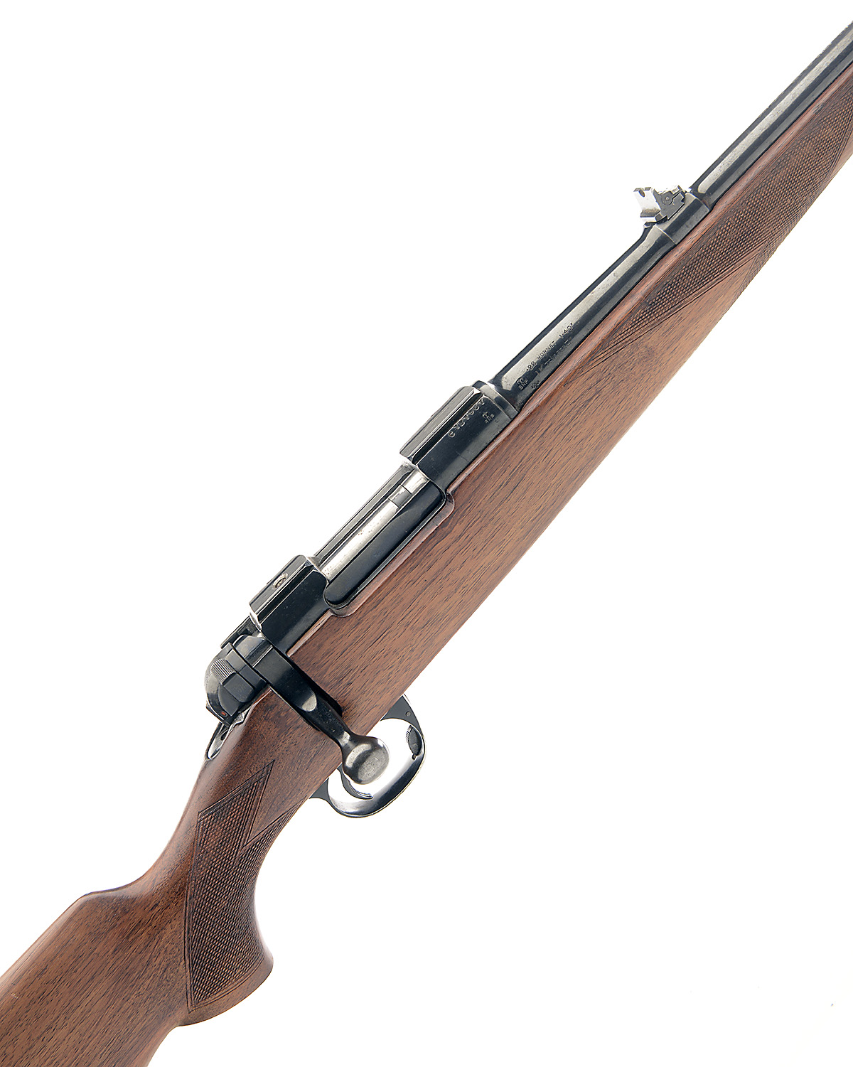 B.S.A. .22 HORNET BOLT-MAGAZINE SPORTING RIFLE, serial no. C1B1967, 24in. nitro barrel, ramp-mounted bead fore-sight, leaf rear-sight, and 1 x folding sight, manual safety, hinged floorplate, 13 5/8in. well-figured pistolgrip stock