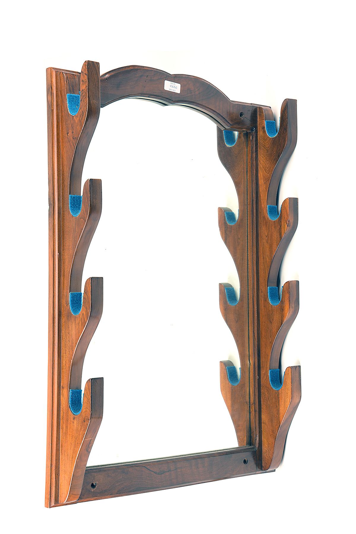 AN OAK MIRROR GUNRACK, mirror with oak frame and provision for four guns