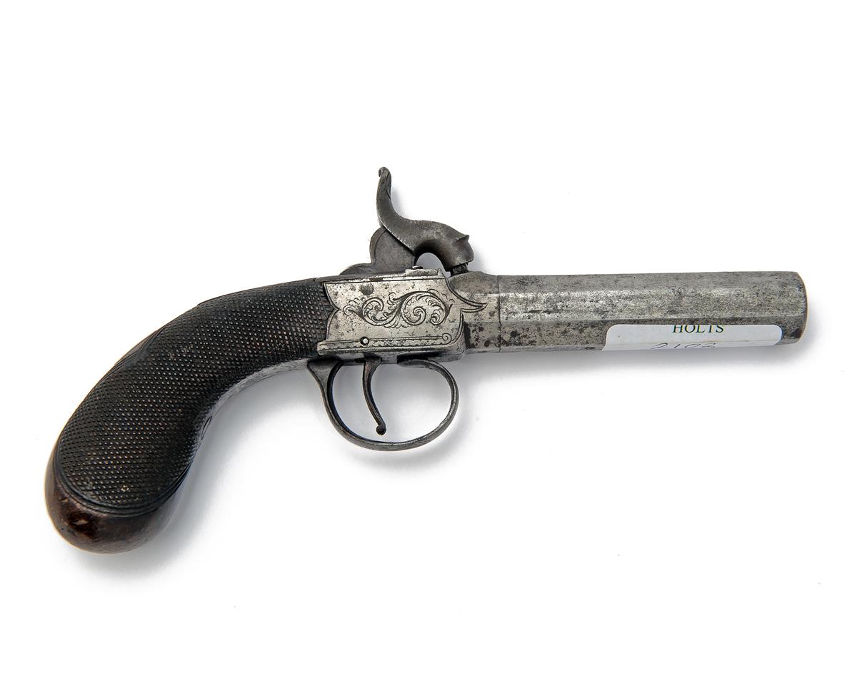 A 28-BORE PERCUSSION POCKET-PISTOL, UNSIGNED, no visible serial number,