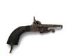 A 9mm PINFIRE DOUBLE-BARRELLED PISTOL, UNSIGNED, MODEL LEFAUCHEUX TYPE, no visible serial number,
