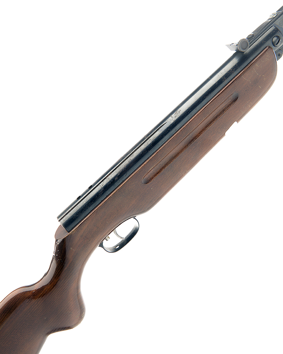 A .22 BREAK-BARREL AIR-RIFLE SIGNED WEIHRAUCH, MODEL 'HW35 STD', serial no. 547262, early production without safety catch, sighted 19 1/2in. barrel, railed air-chamber and beech half-stock