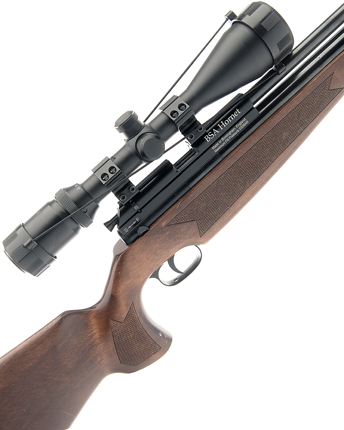 A .22 PRE-CHARGED PNEUMATIC AIR-RIFLE SIGNED BSA, MODEL HORNET, serial no. 2B 2228,