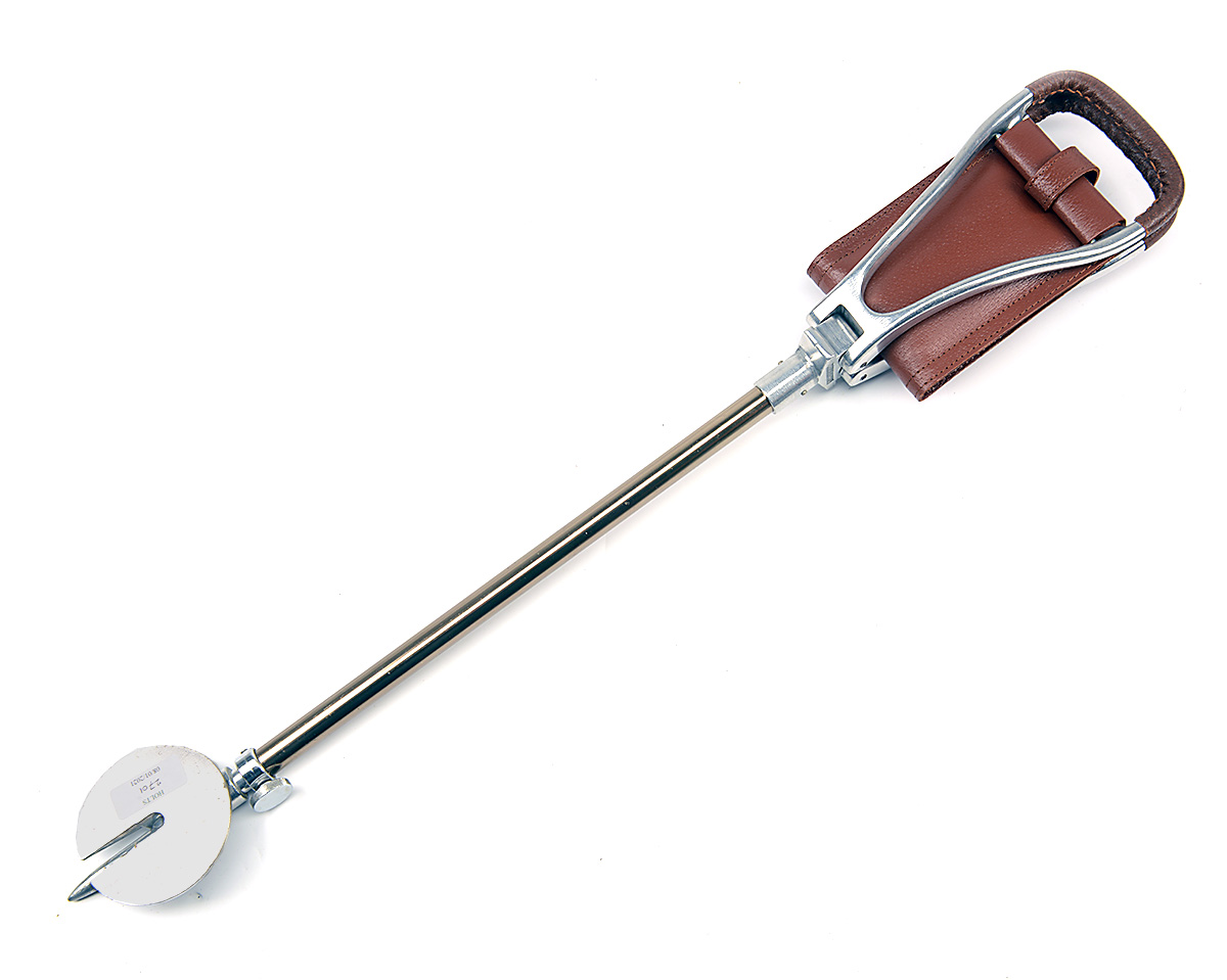 A FEATHERWEIGHT SHOOTING STICK, with aluminium folding leather seat, adjustable in length