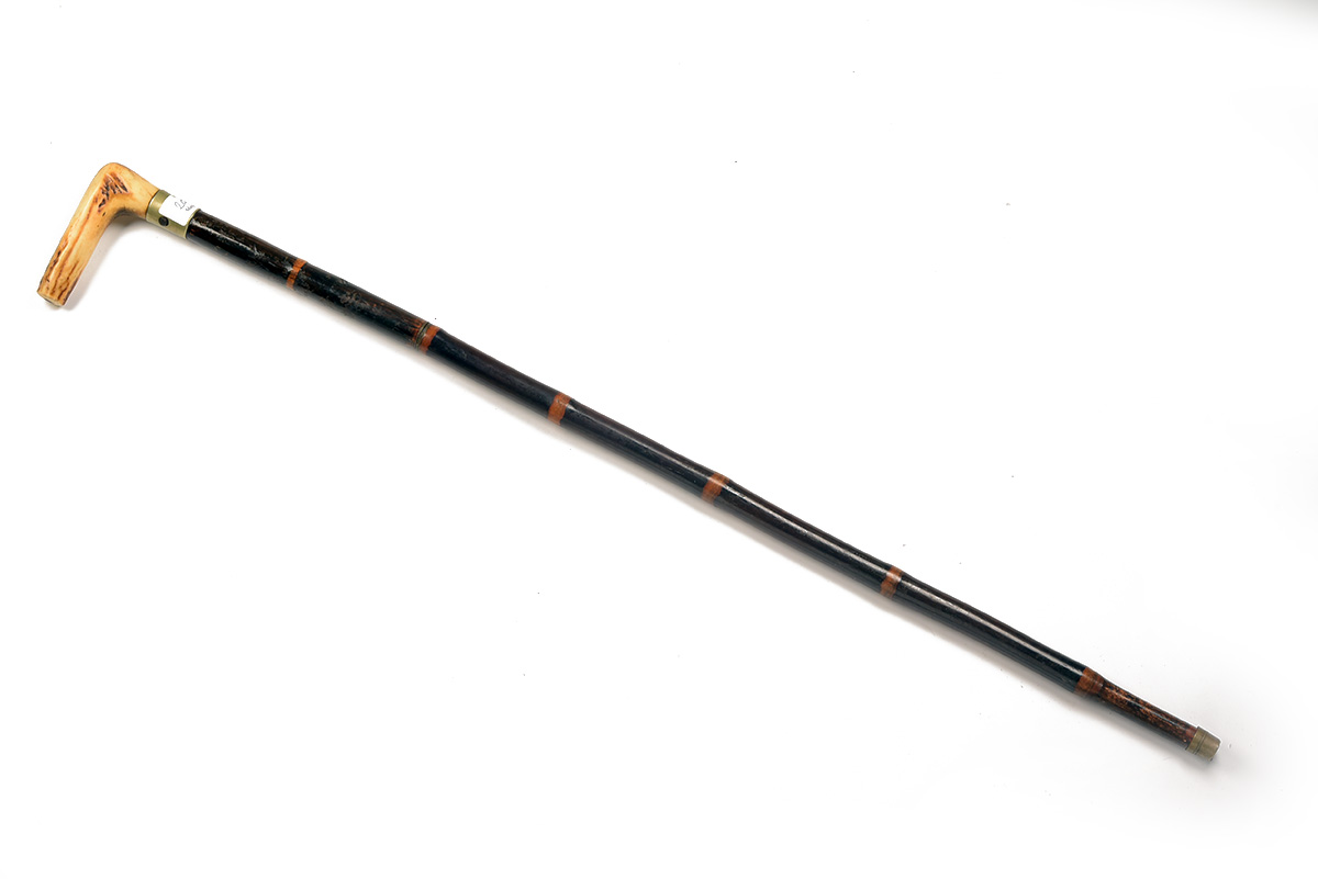 A 7mm W/S WALKING STICK SHOTGUN, UNSIGNED, no visible serial number, with 23 1/4in. cane-covered barrel, twist and pull brass-lined action and angled staghorn grip