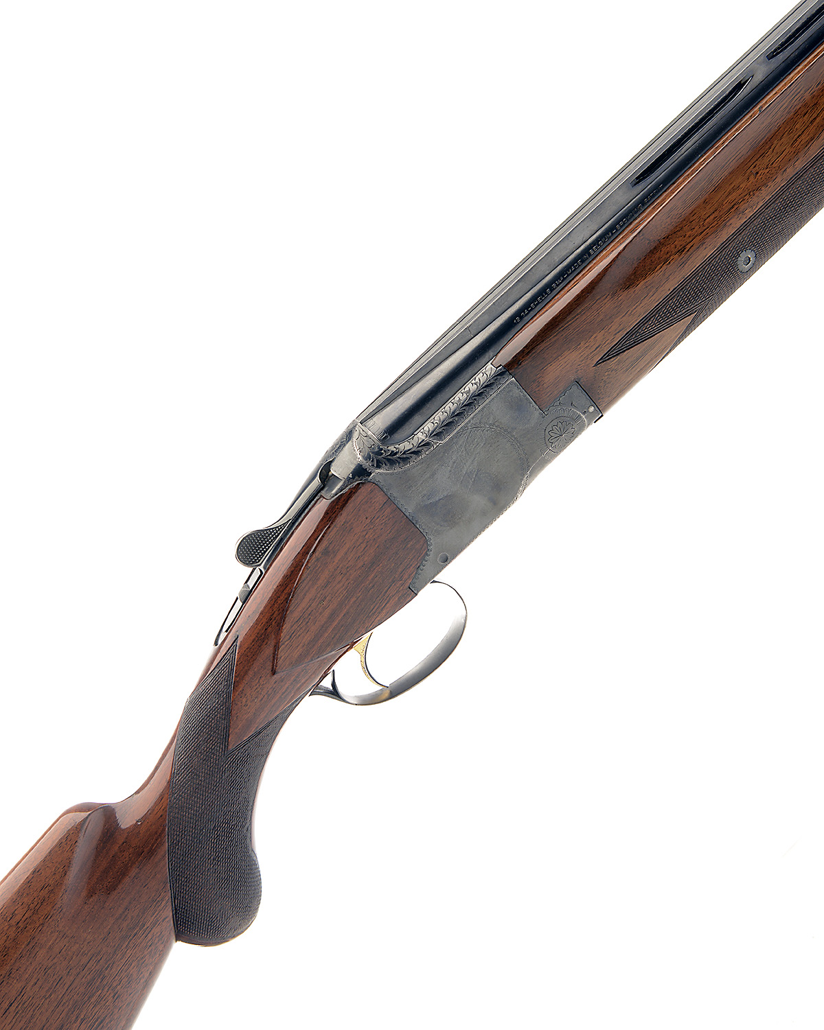 FABRIQUE NATIONALE 12-BORE SINGLE-TRIGGER OVER AND UNDER EJECTOR, serial no. 64000 S6, 26 3/8in. nitro barrels with 16mm ventilated matt top-rib, 2 3/4in. chambers, bored approx. true cyl. in both, hold-open toplever, manual safety with integral barrel selector switch, gold-washed single trigger, border engraving, blacked finish, 14 1/2in. semi-pistolgrip stock including 3/4in. wooden extension, 7lb. 10oz.