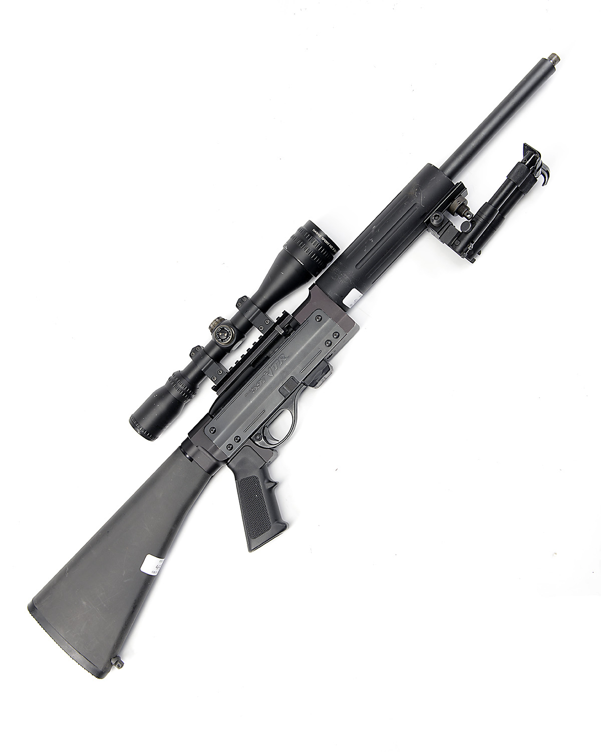 REMINGTON .22 L.R. 'MODEL 597 VTR' SELF-LOADING SPORTING RIFLE, serial no. C2617492, Circa 2000. 16 1/2in. unsighted nitro barrel, threaded for sound moderator, fitted with a Hawke 3-9x40 telescopic sight, manual safety, detachable magazine, folding bipod, assault type stock