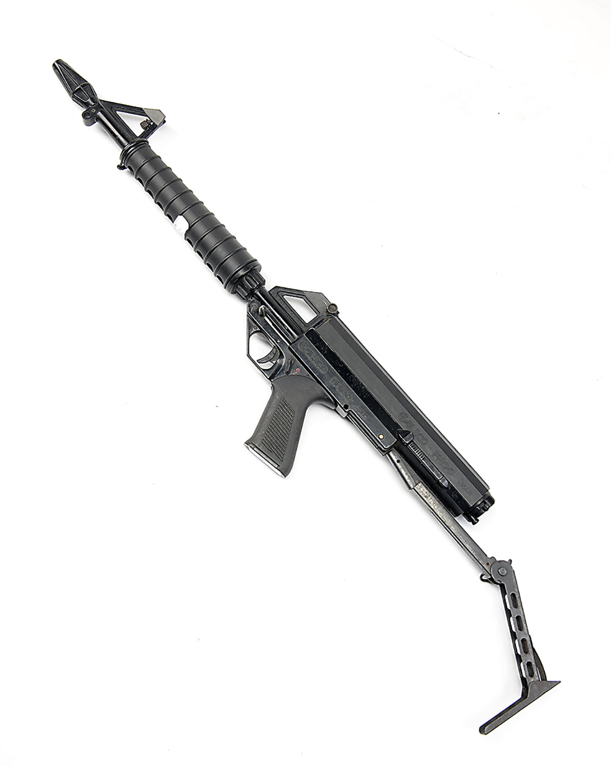 CALICO .22 L.R. ',-100' SELF-LOADING SPORTING RIFLE, serial no. D005297, 17 3/4in. nitro barrel, open sights, manual safety, detachable magazine,, folding metal stock