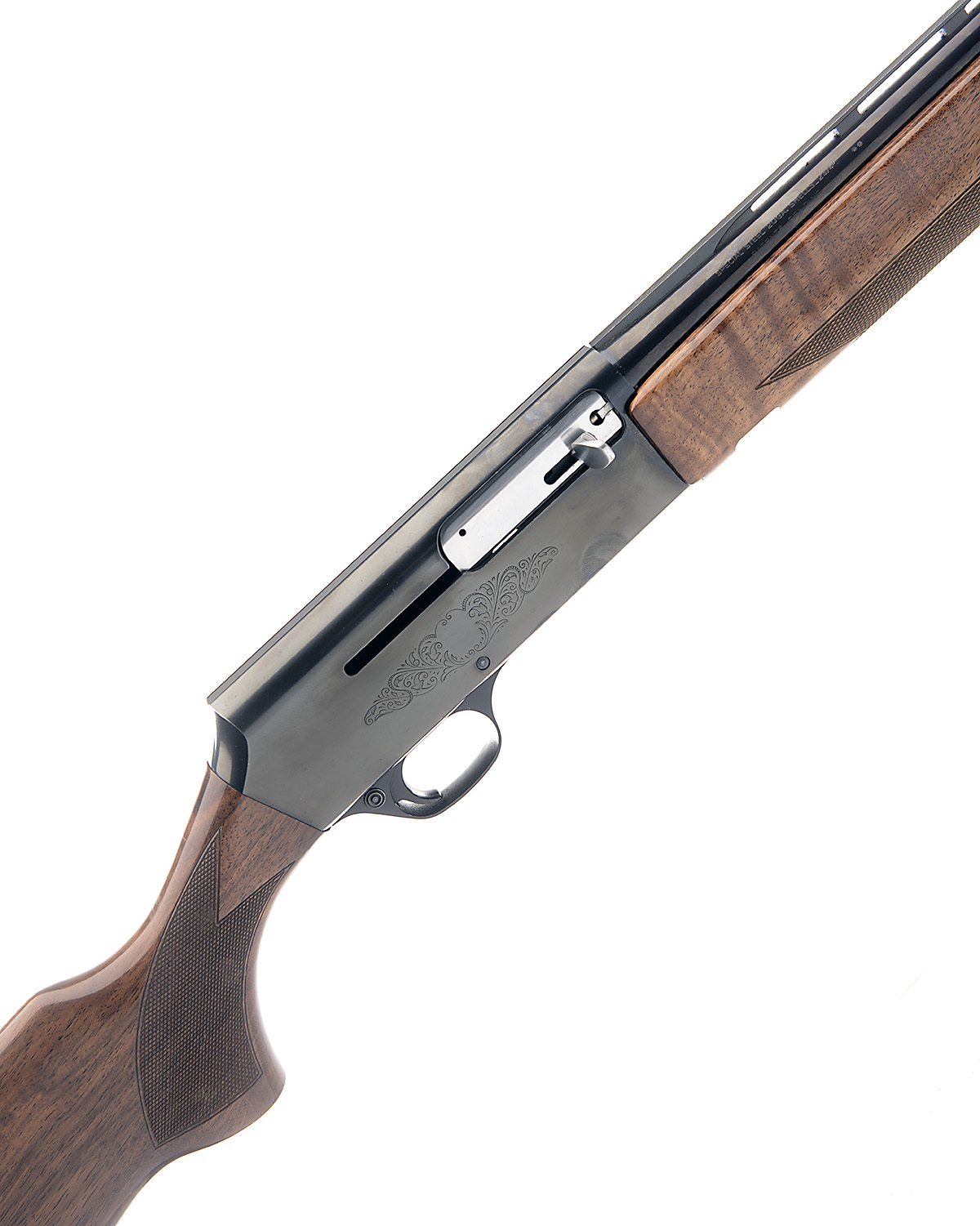 BROWNING 20-BORE '2000' SEMI-AUTO SHOTGUN, serial no. 631RP09254, restricted magazine, 28in. nitro barrel with 6mm ventilated matt rib, 2 3/4in. chamber, bored approx. 1/4 choke, manual button safety, action with side loading gate, partial scroll engraving, blacked finish, 14 1/4in. pistolgrip stock including trademark buttplate, weight 6lb. 15oz.