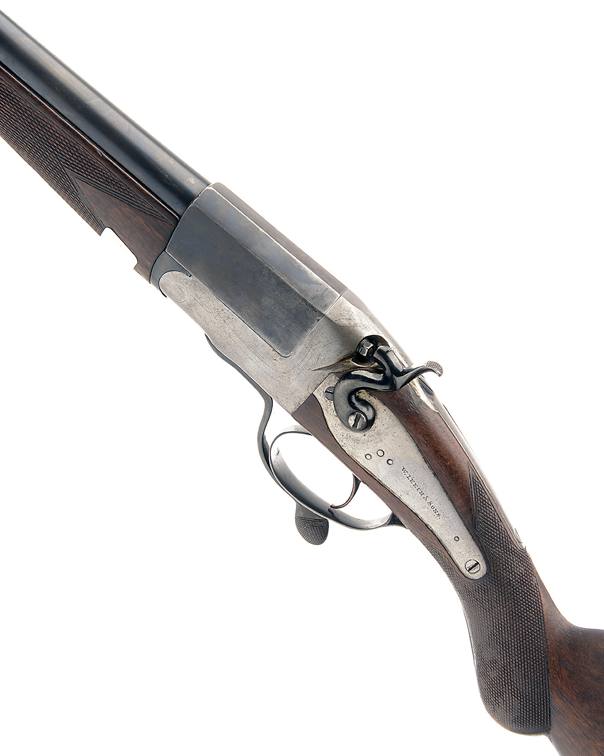 W. LEECH & SONS 10-BORE (89MM) SINGLE-BARRELLED ROTARY-UNDERLEVER HAMMERGUN, serial no. 2299, 32in. nitro reproved barrel with faceted breech section, the tube engraved 'W. LEECH 8 SONS. CHELMSFORD. 2299.', 89mm chamber, bored approx. extra full choke, Jones patent rotary-underlever, rebounding back-action lock, brushed bright and reblued finish overall, 14 1/2in. replacement semi-pistolgrip stock, weight 7lb. 1oz.