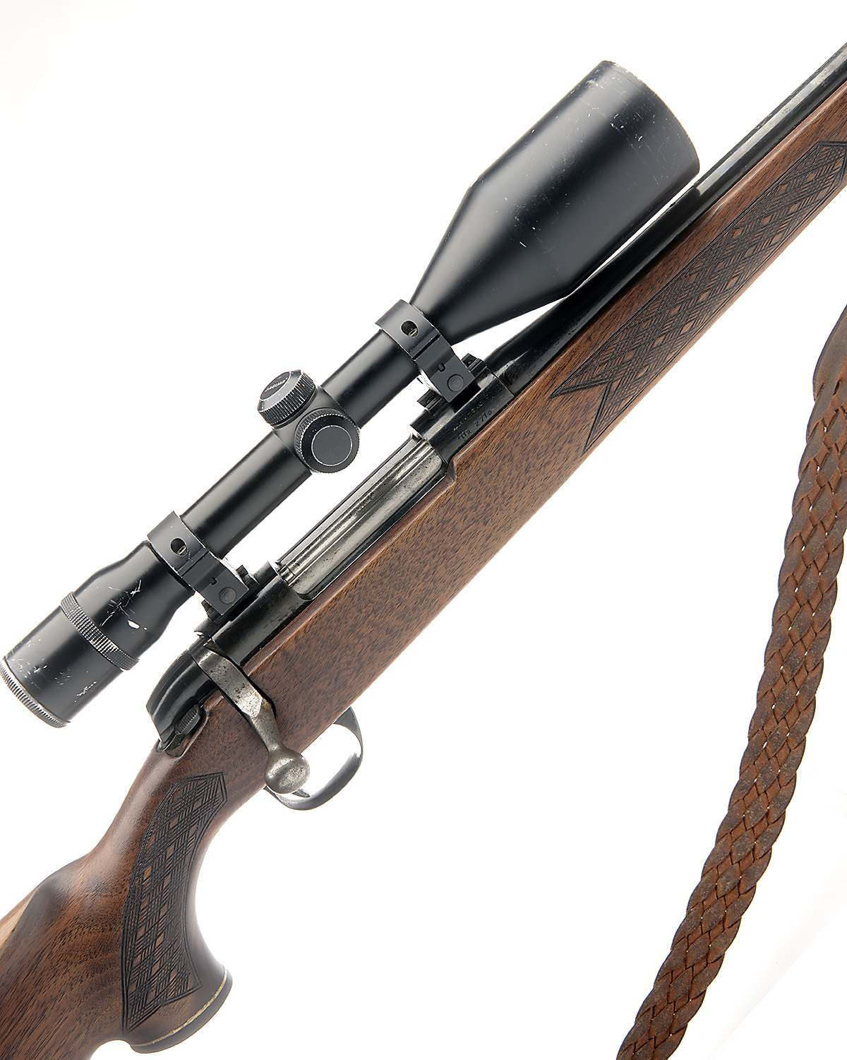 B.S.A. CO. .243 WIN. BOLT-MAGAZINE SPORTING RIFLE, serial no. 11R2715, 23 1/2in. nitro barrel, ramp-mounted fore-sight, rear-sight missing, fitted with a Lisenfeld 8x56 telescopic sight, manual safety, hinged floorplate, 14in. well-figured pistolgrip stock (including ventilated recoil pad with cheekpiece, leather sling