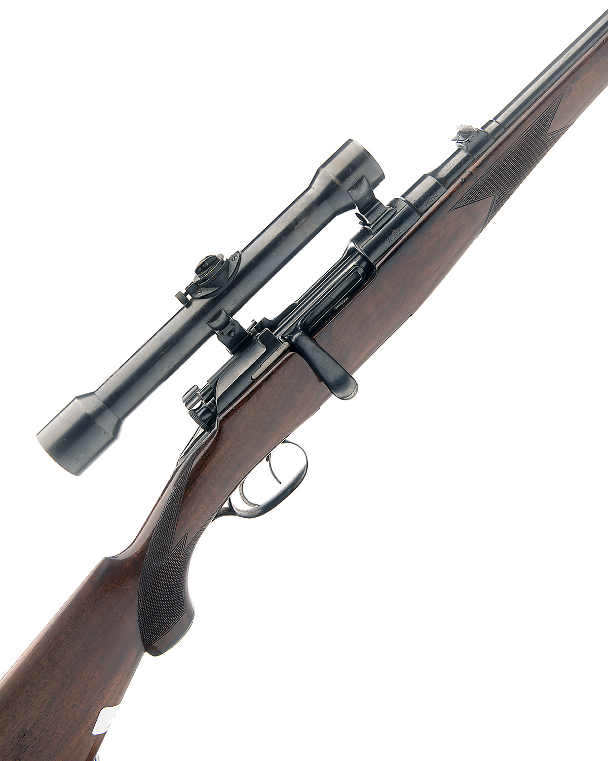 GES. STEYR 8X56 MANNLICHER SCHONAUER 'MODEL 1908' BOLT-MAGAZINE STUTZEN SPORTING RIFLE, serial no. 16292, 22 1/4in. nitro barrel, ramp-mounted gold bead fore-sight, leaf rear-sight with 1 x folding, fitted with a Carl Zeiss Jena Zielvier telescopic sight, with quick release claw mounts, manual flag safety, detachable magazine, set triggers, 14in. well-figured full-length pistolgrip stock with cheekpiece, sling swivels
