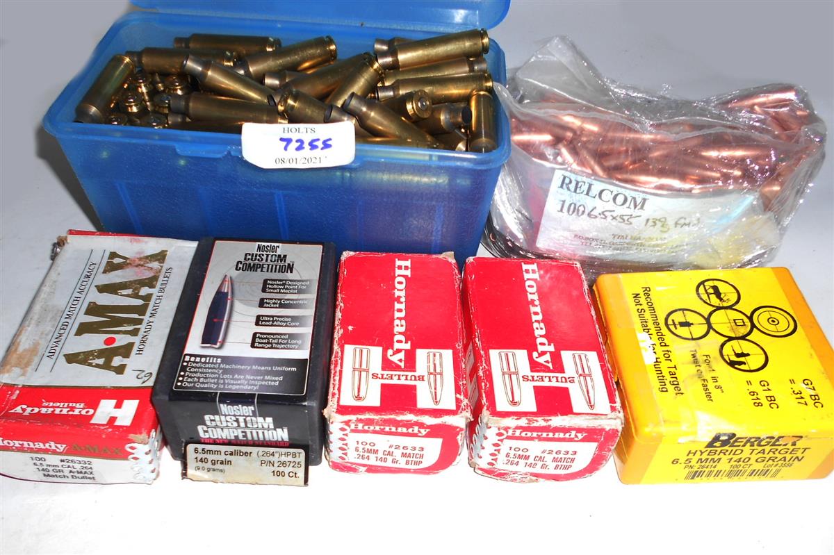 800 BULLETS FOR 6.5 CAL. BERGER & RELCOM WITH 50 LAPUA 6.5 x 55 CASES comprising of: