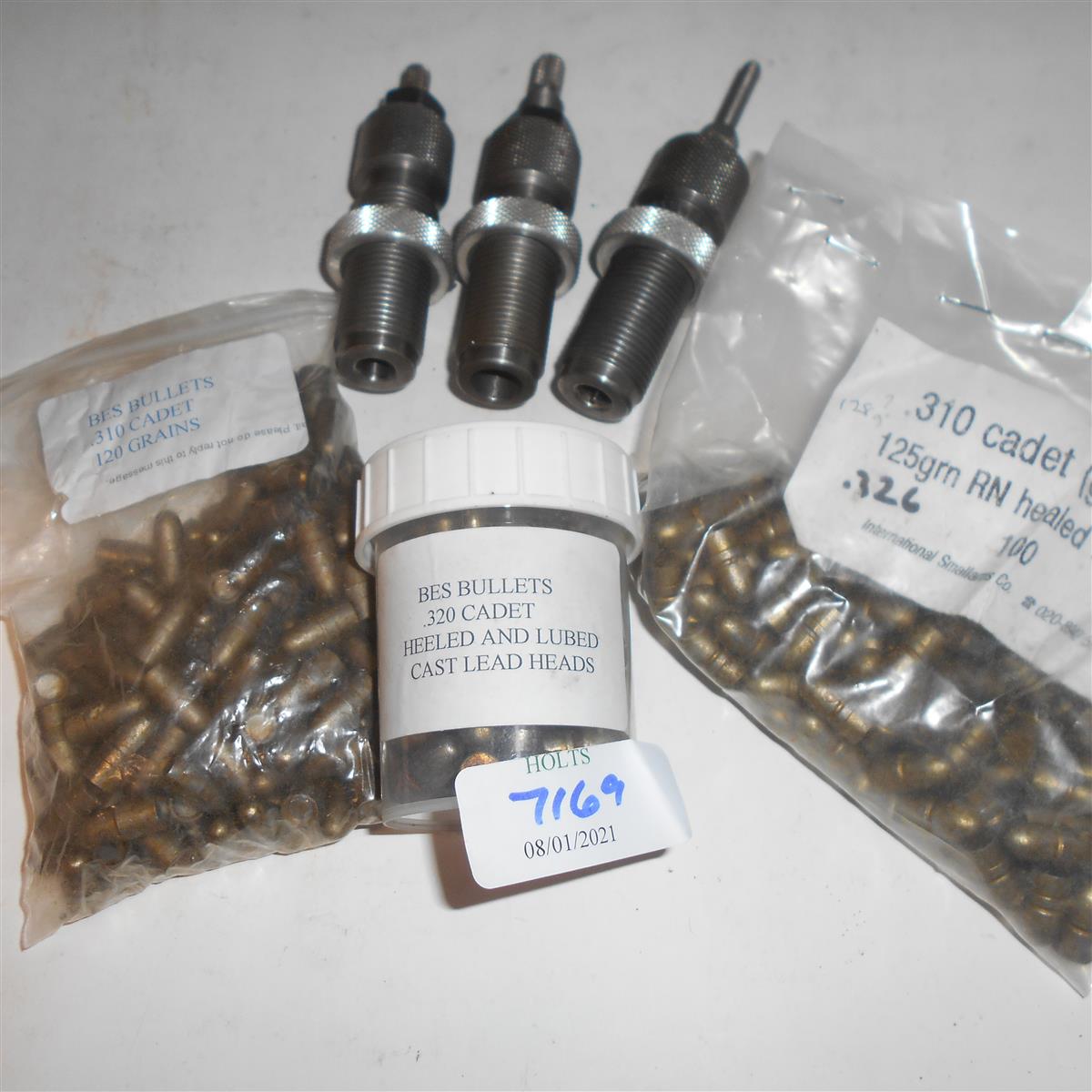 A SET OF 3 .310 CADET DIES WITH 300 .310 CAST LEAD BULLETS