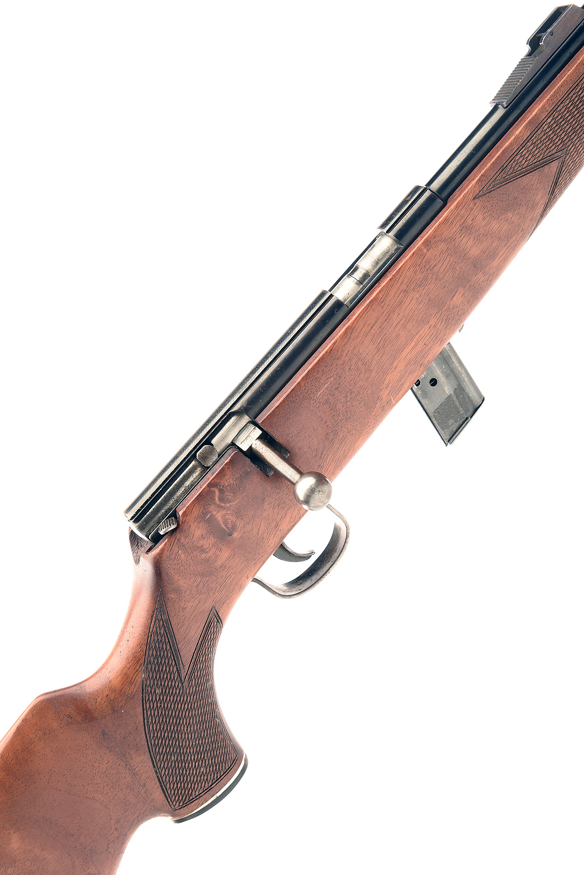 VOERE .22 L.R. BOLT-ACTION SPORTING RIFLE, serial no. 278322, circa 1965, 13 1/4in. nitro barrel, threaded for sound moderator, sights missing, manual safety, detachable magazine, pistolgrip stock, overall length 32in.