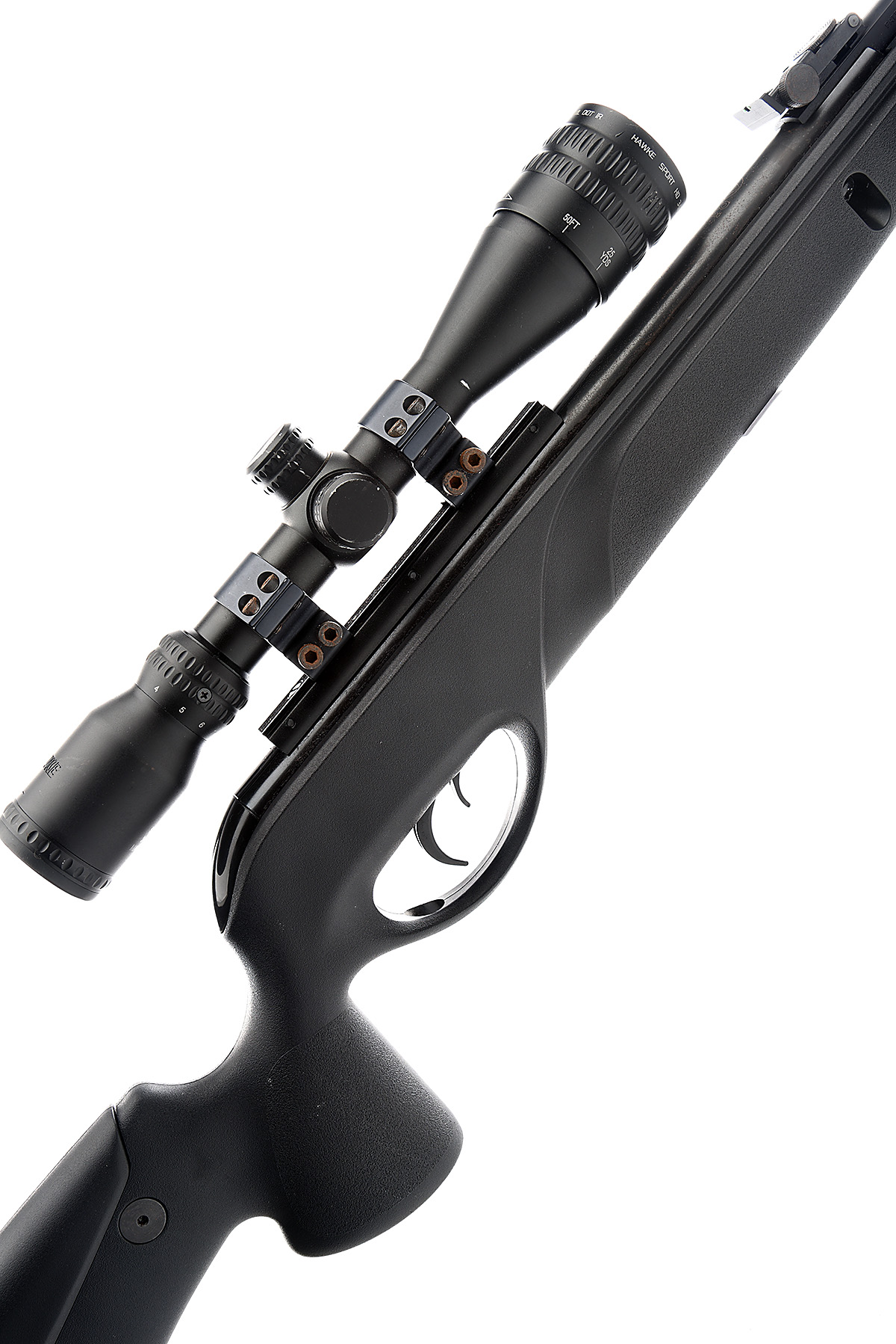 A .22 BREAK-BARREL AIR-RIFLE SIGNED GAMO, MODEL 'SOCOM', serial no. 04-1C-483796-11, with sighted 18in. barrel, blued air-chamber, black abs plastic 'tactical' half-stock and fitted with a Hawke 3-9x40 telescopic sight