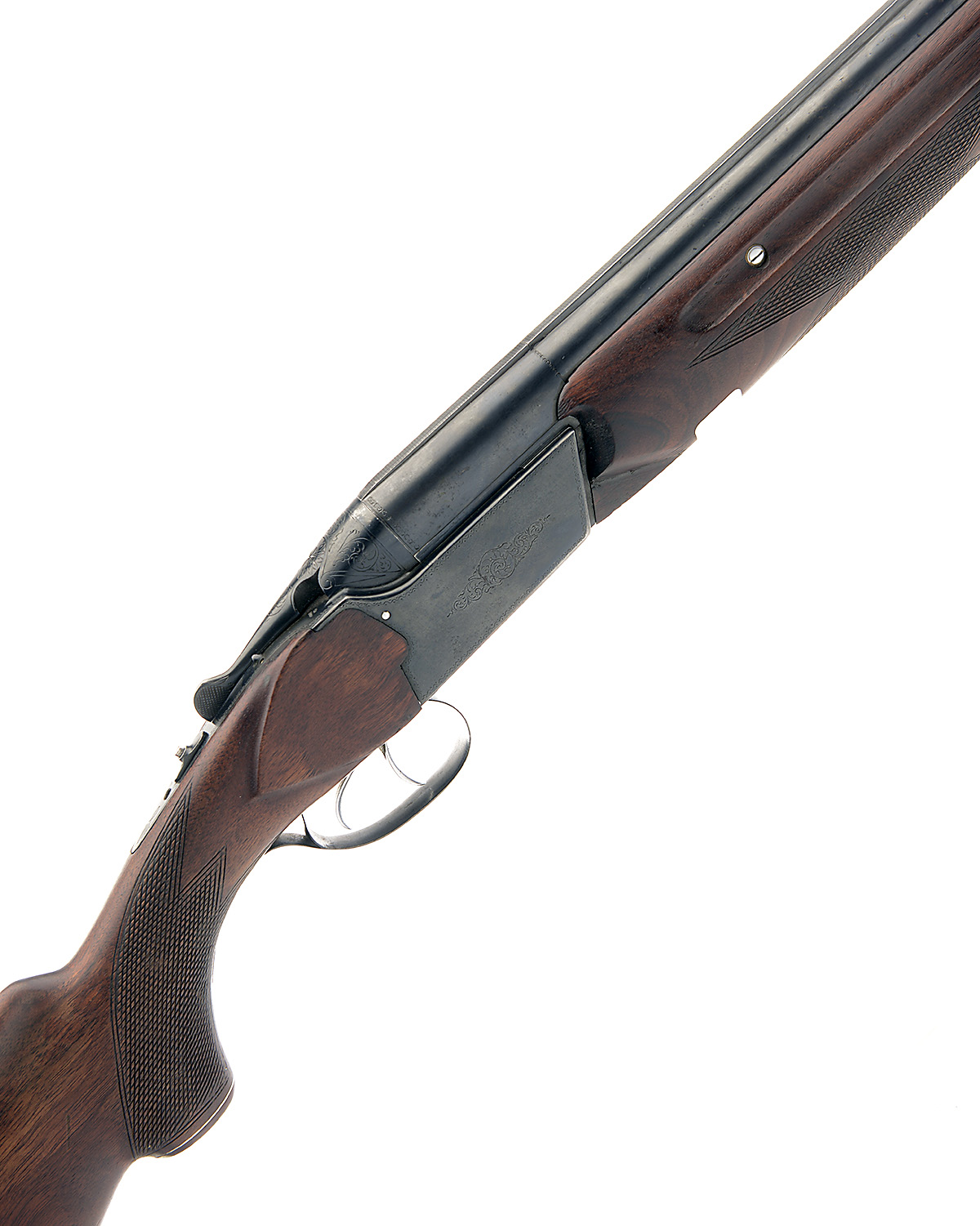 TULSKY ORUZHEINY ZAVOD 12-BORE 'T03-34P' DOUBLE-TRIGGER OVER AND UNDER NON-EJECTOR, serial no. MN804, 28 1/4in. nitro barrels with 7mm solid matt top-rib, 2 3/4in. chambers, bored approx. 3/4 and full choke, hold-open toplever, manual safety, cocking indicator studs, border and partial scroll engraving, blacked finish, 14 3/4in. pistolgrip stock with cheekpiece, sling swivels, including 1in. ventilated rubber recoil pad
