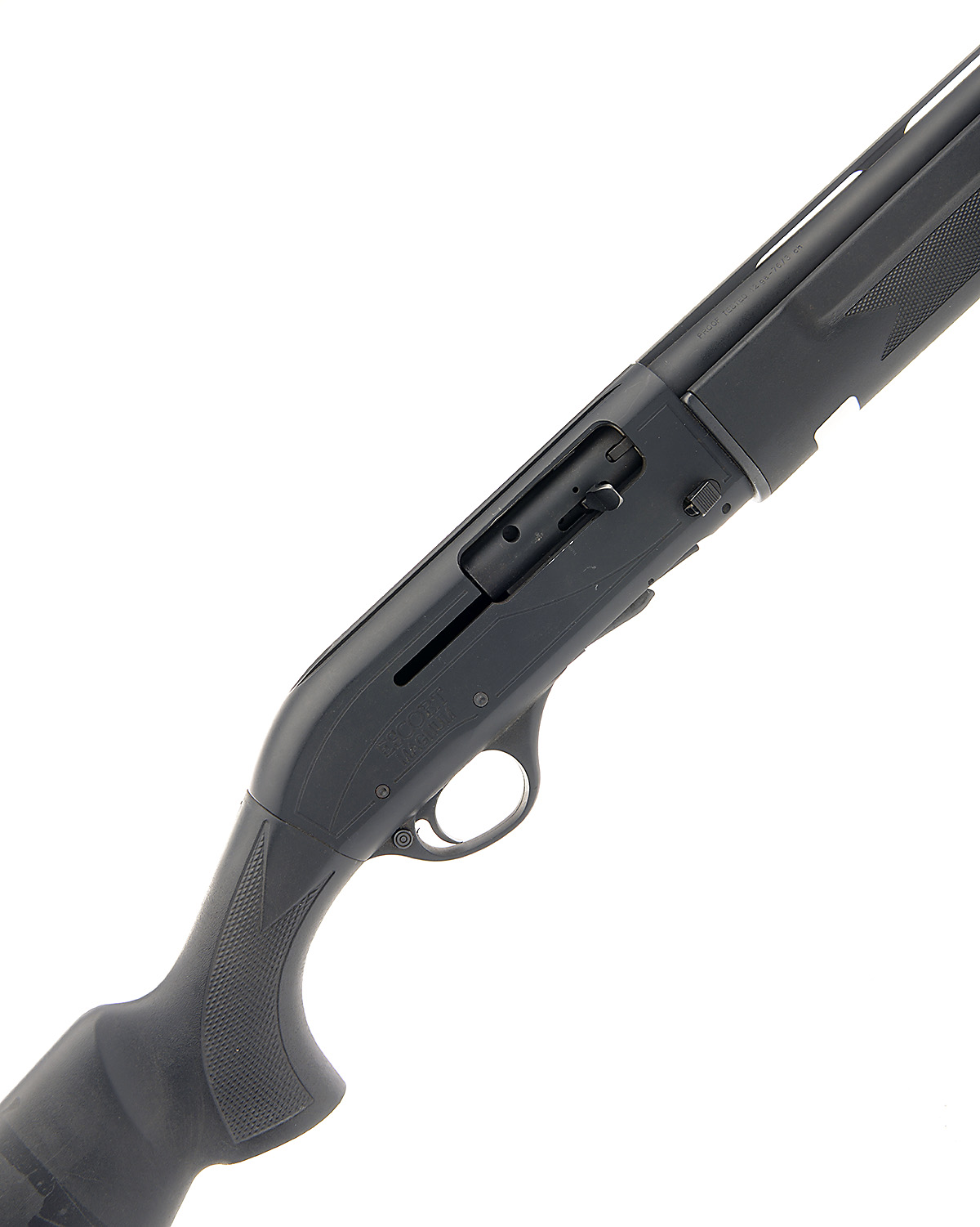HATSAN 12-BORE (3IN.) 'ESCORT MAGNUM' SEMI-AUTO SHOTGUN, serial no. 250232, restricted magazine, 28in. nitro barrel with 7mm ventilated matt rib, 3in. chamber, multichoke (no spares), manual safety, magazine cut-off switch, plain blacked action, 14 1/2in. synthetic pistolgrip stock including ventilated rubber recoil pad