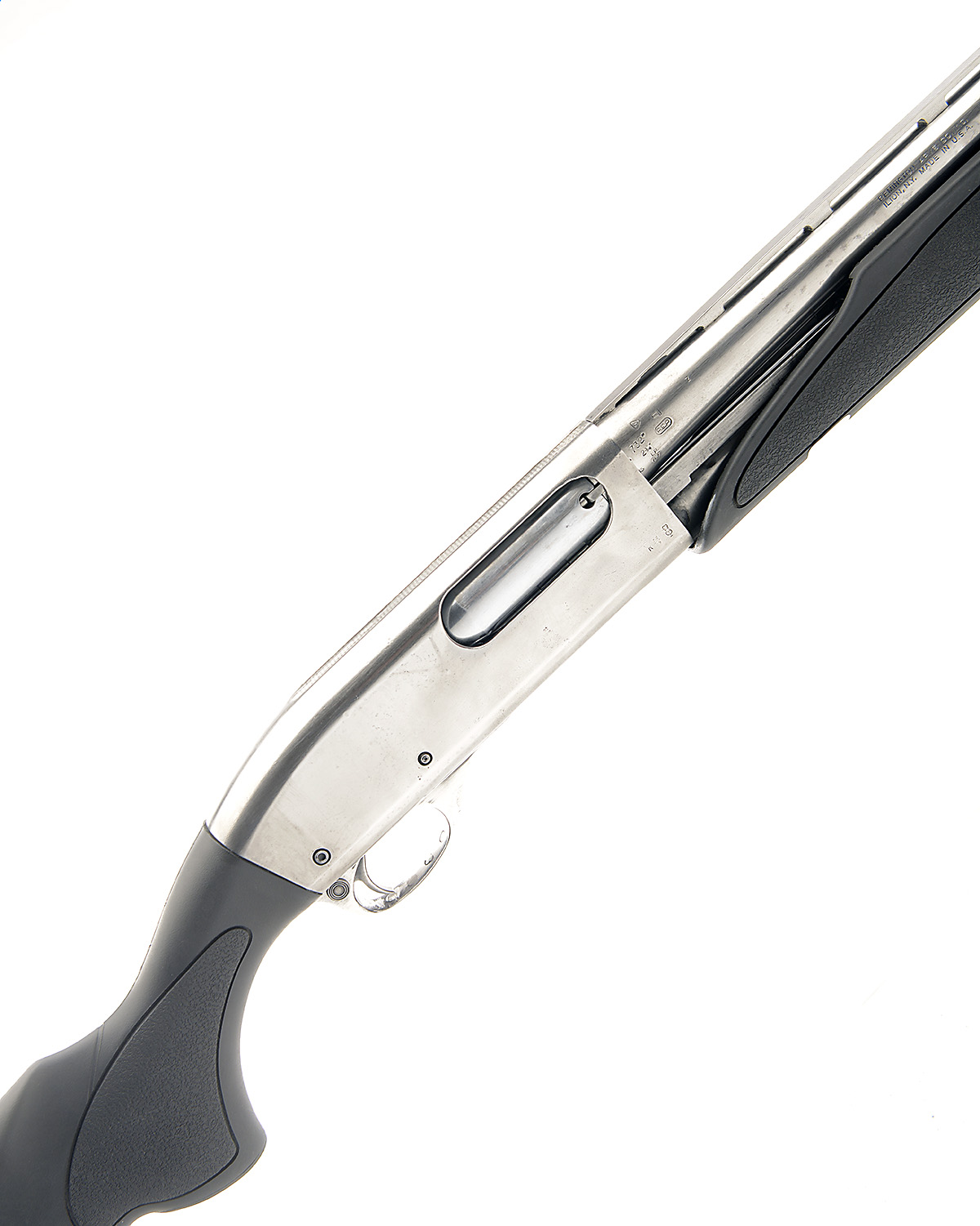 REMINGTON 12-BORE 'WINGMASTER 870TB' PUMP-ACTION SHOTGUN, serial no. T280273V, restricted magazine, 30in. nitro reproved barrel with 8mm ventilated matt rib, 2 3/4in. chamber, bored approx. 1/2 choke, manual button safety, action and barrel with brushed bright finish, 13 3/4in. synthetic pistolgrip stock including rubber recoil pad