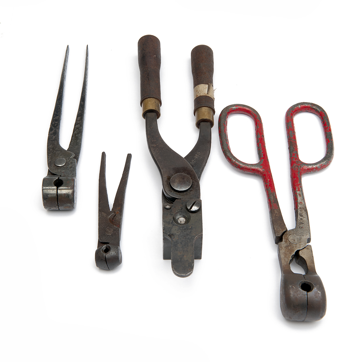 A COLLECTION OF FOUR VINTAGE BALL AND BULLET MOULDS,