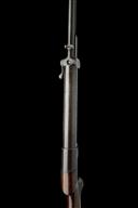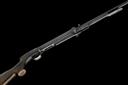for 1907-08, with round tapering 17in. barrel, dove-tailed fore-sight and elevating rear-sight, tap-loading breech, plain air-chamber marked 'BSA AIR RIFLE LINCOLN JEFFERIES PATENT' over 'MADE BY THE BIRMINGHAM SMALL ARMS COMPANY LD', single pin trigger unit, saw-handled walnut butt-stock retaining stamped trademark to left side, iron heel-plate, no provision for fore-end (cocking link probably replaced) and spade type under-lever, overall length 38 1/2in., weight approximately 6lbs.